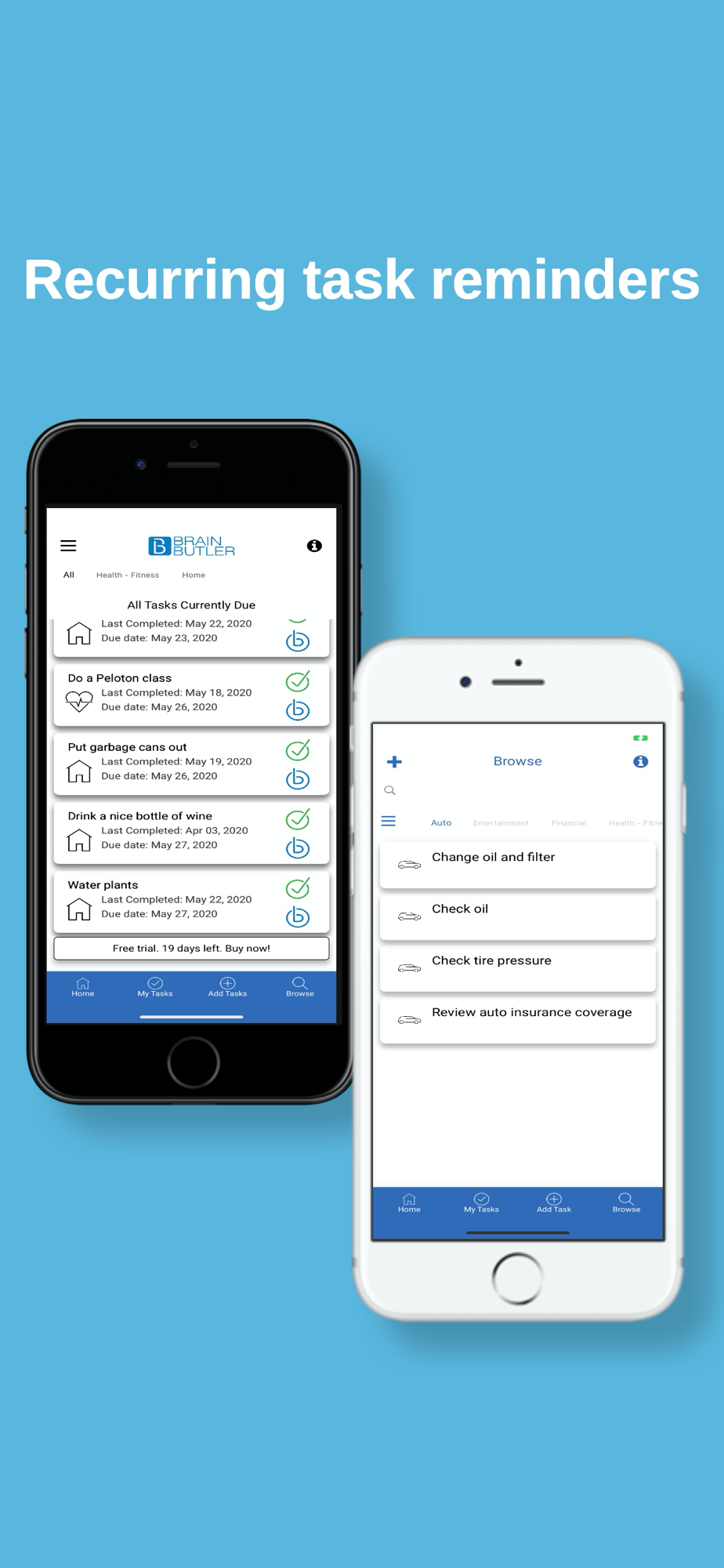 Recurring tasks are endless and it’s hard and stressful to try to remember when you did them last and when it’s time to do them again. Your Brain Butler remembers so you can rest easy.