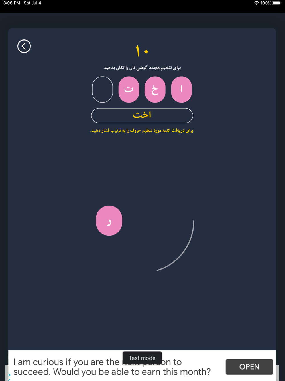 در این برنامه شما چهار حروف را بطور غیر مرتب دریافت می کنید و از آن باید کلمهٔ مورد تنظیم را جستجو کنید. ما هر چند وقت بعد دیتابیس/بانک کلمات این برنامه را تازه میسازیم. با این بازی شما می توانید که سرعت تفکر و هوش خود را انکشاف دهید.