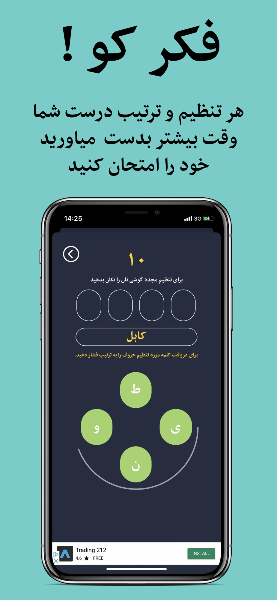 فکر کو و کلمهٔ مجهول را دریافت کنید،هیچان این بازی شما را معتاد به این بازی خواهد ساخت، پس احتیاط کنید.