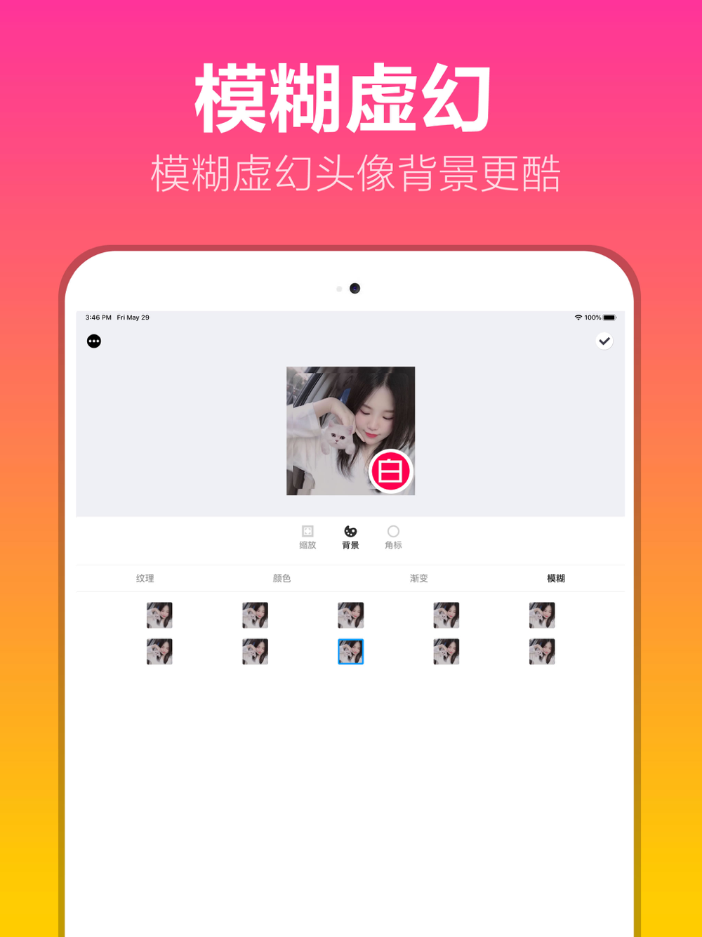 - 10 种不同程度背景模糊,由浅至深由你选择。