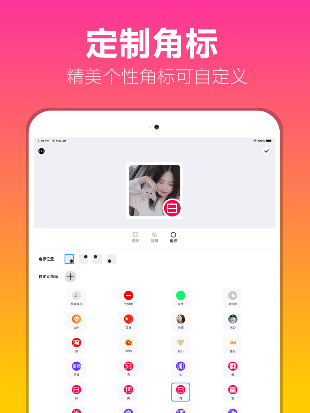 -内置大量角标素材,可制作 加国旗,加V等各种创意角标