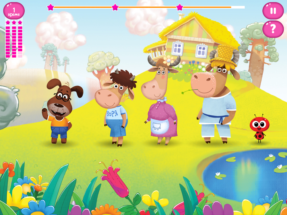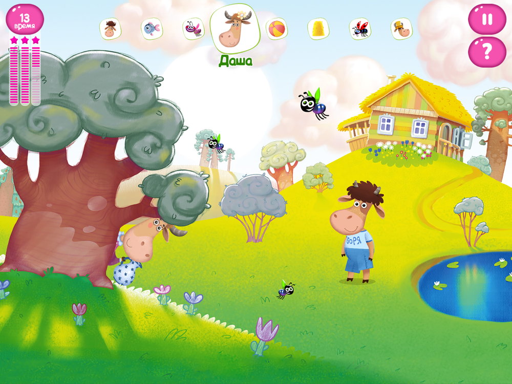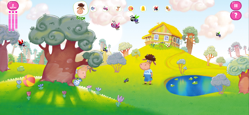 Теперь вы cможете не только смотреть мультфильмы про ваших любимых героев, но и играть с ними! Развлекайтесь вместе с телёнком Борей и его друзьями, разгадывайте загадки, играйте в игры и пойте песенки!