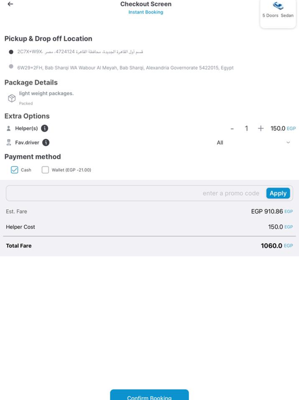 اول تطبيق متخصص في جميع انواع الشحن من المستندات وحتي النقل الثقيل مع خيارات مختلفة للدفع , اختار مكان الاستلام والتسليم, اوصف الشحنة وصورها وحدد الميعاد المناسب وفورا الطلب سوف يرسل الي السائقين القريبين منك ومعهم سيارات مناسبة لشحنتك ويعرض عليك جميع السيارات المتاحة واسعارها لتختار منها وتابع السائق عن طريق GPS والمستلم سوف يستلم كود سري للتاكد منه عند التسليم. تابع محفظتك المالية وفواتيرك في لحظتها