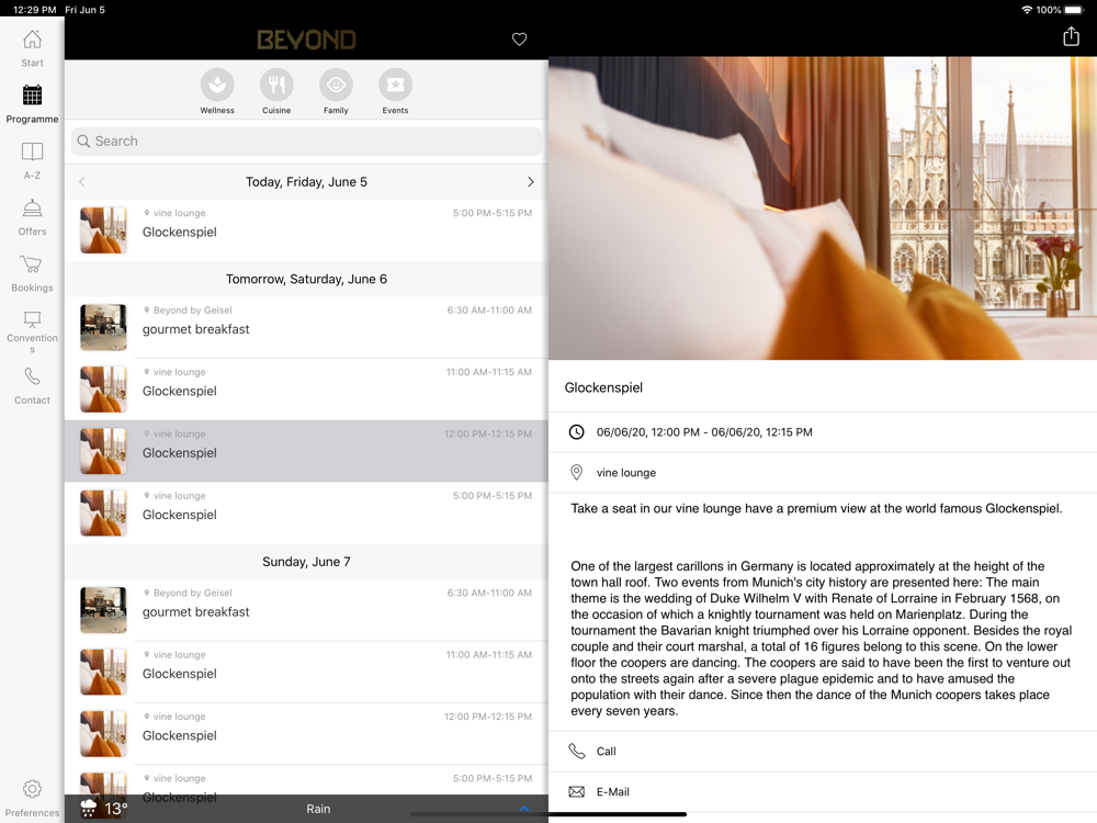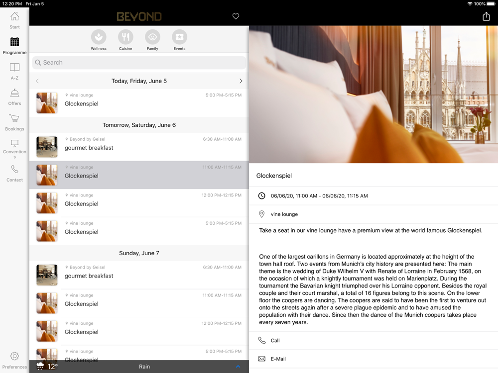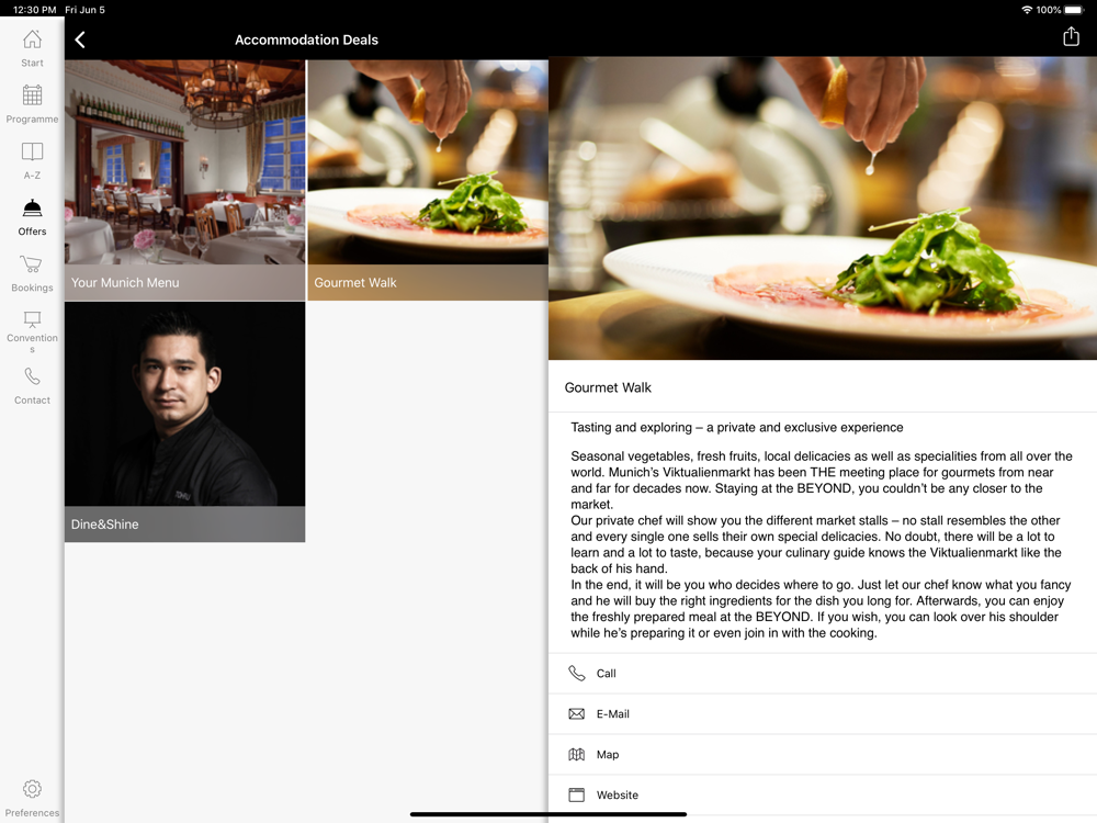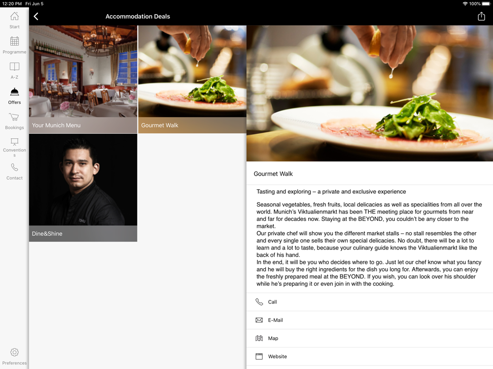 Always at your service: Our concierge gained experience in the best hotels, knows every restaurant and every hot spot. It makes your life in Munich easier, day and night. For all other questions: Write to us or give us a call. We are here for you! All contact information can be found in the app.