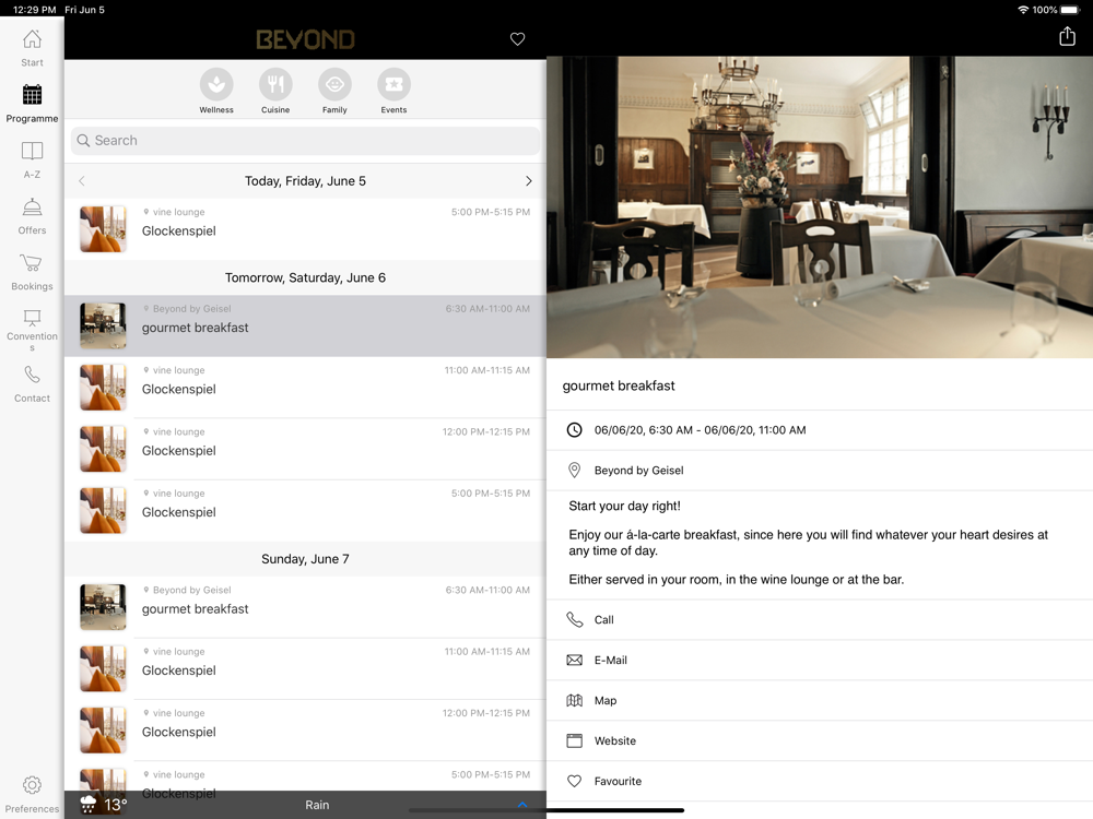 If you are looking for privacy, retreat to your bedroom. If you feel like company, three public areas of the BEYOND invite you to a lively exchange with like-minded people. Browse the app for special wines or offers in the culinary package.
