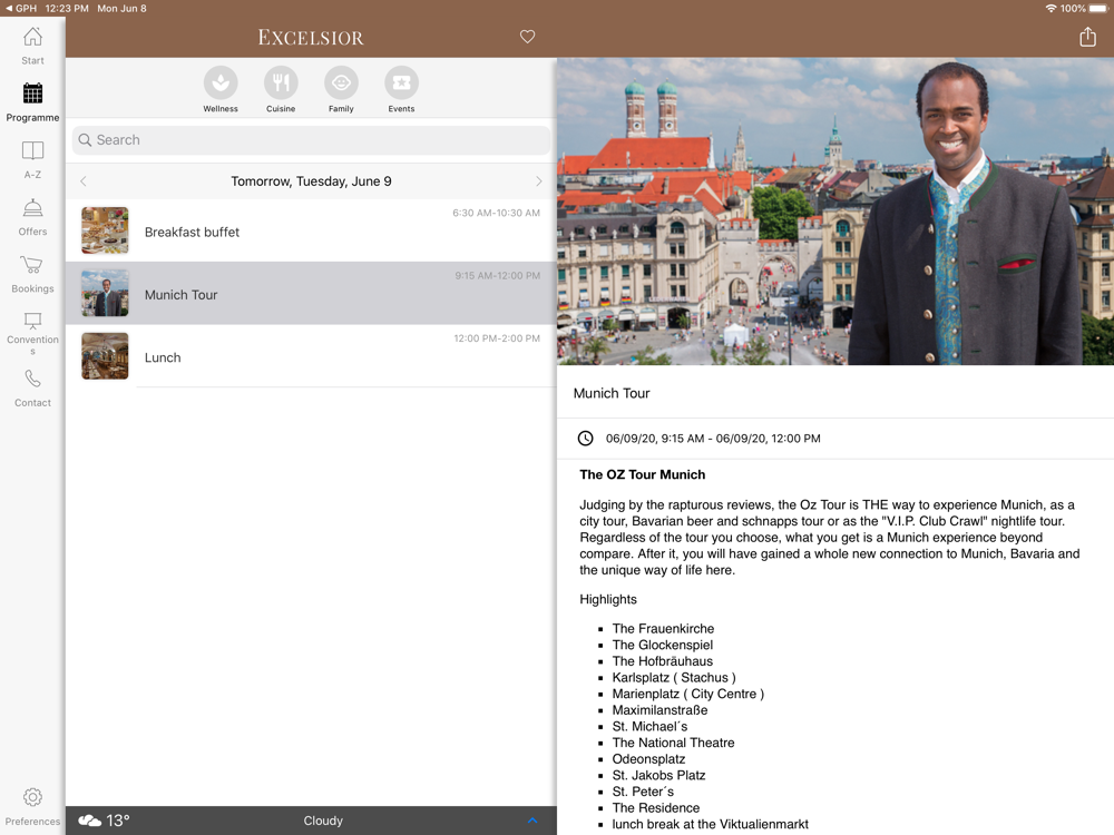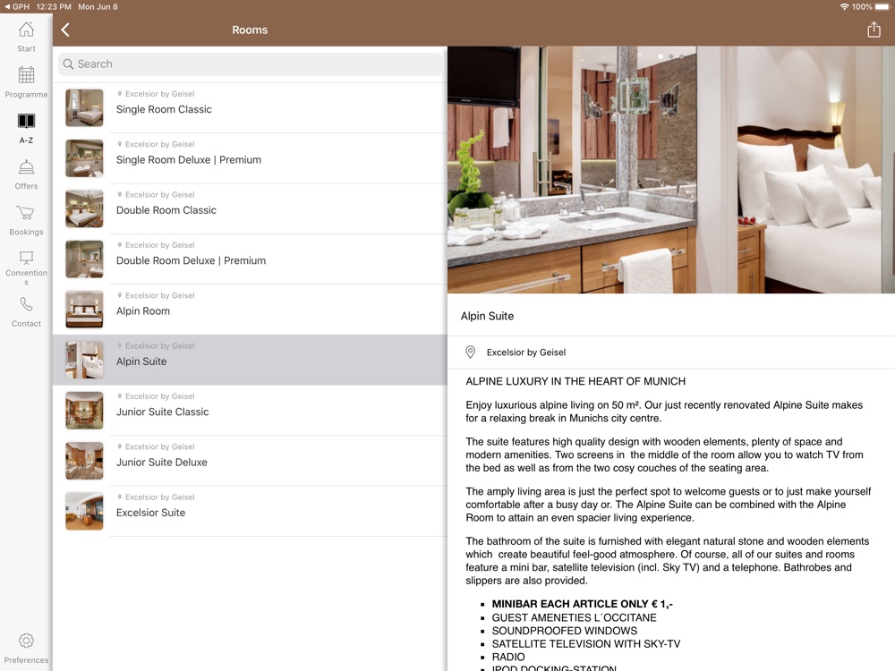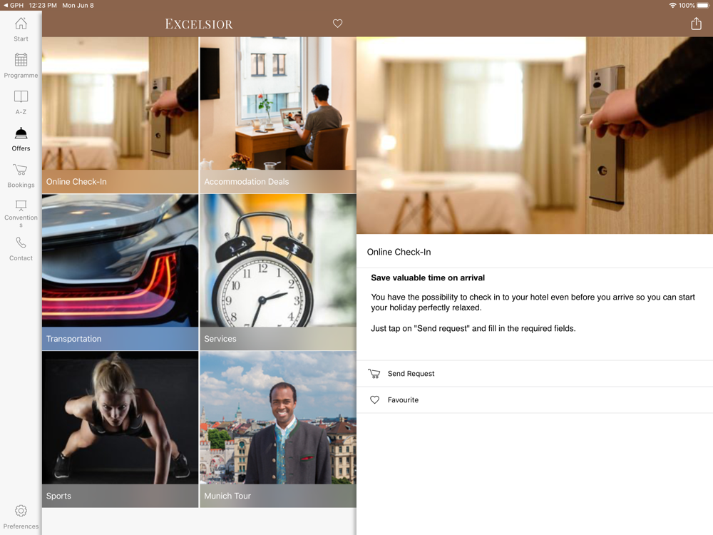 The Excelsior app gives you extensive information about our 4 star hotel in Munich. Use the many advantages of the Excelsior app: