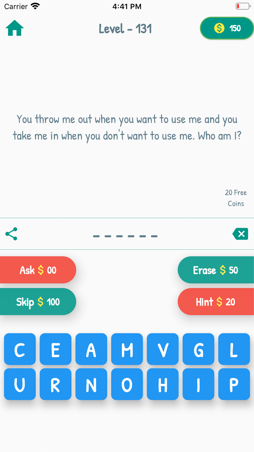 You will get 14 buttons every buttons have a character of your riddles answer string or extra string character.