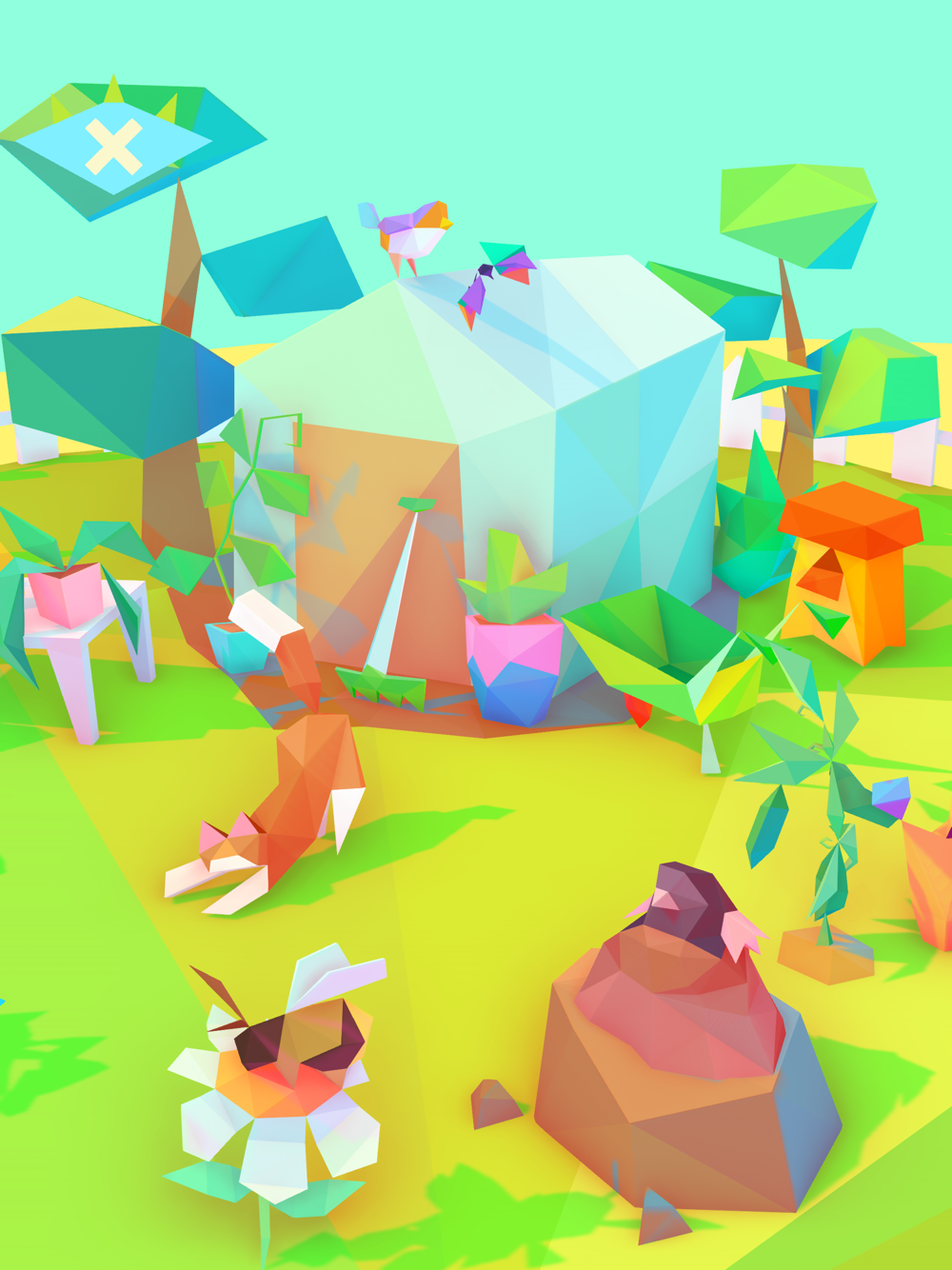 Each level offers a lined shape of an object, that players need to fill with colors by connecting different sections of the shape. Every model is handcrafted to showcase an abstract set of dots, that eventually come to life as impressive, colorful models. Each model is part of a bigger picture - a rich, detailed diorama that represents a continuous scene. The ultimate goal is to uncover all colorful shapes and complete every diorama.