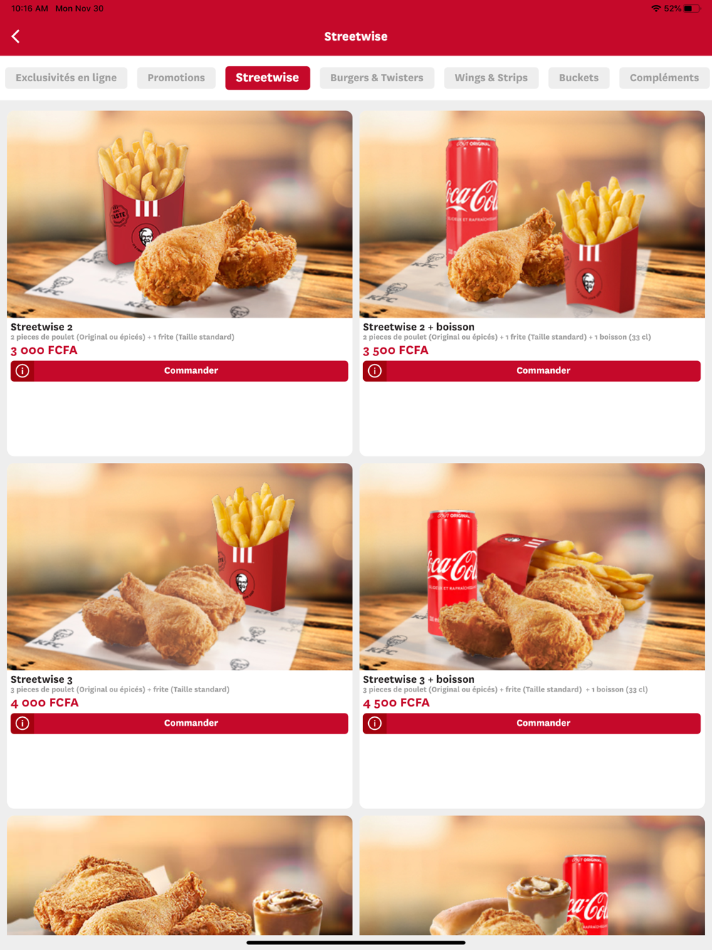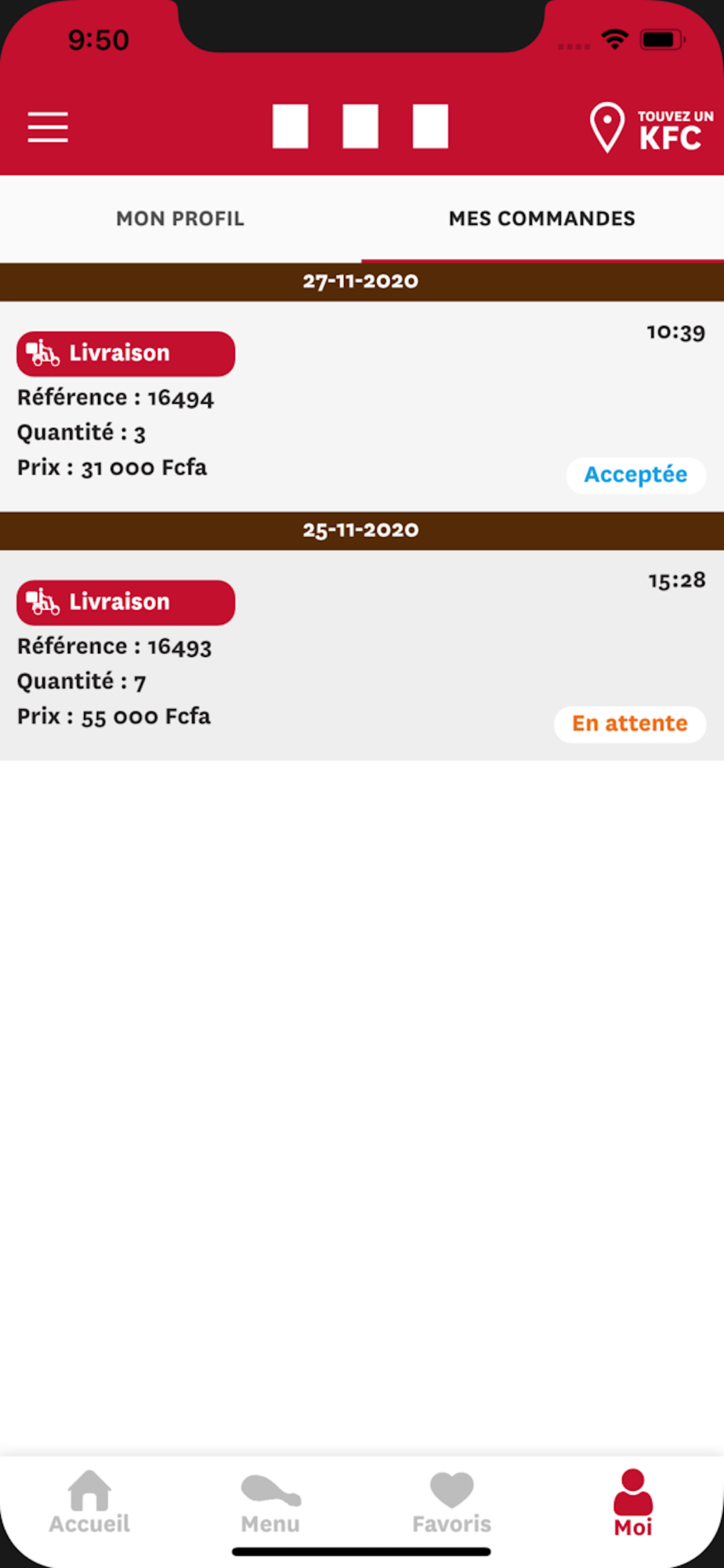 plats favoris. Simple d’accès, KFC Gabon application vous donne accès à