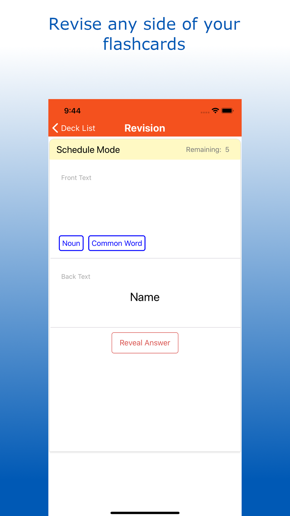 1. Scheduling mode uses a built in scheduling logic that helps you revising each card based on your own natural forgetting curve. It is personalised to show you with cards that need a memory boost at the right time. Add more cards along the way and let the app helps you in organising your revision schedule.