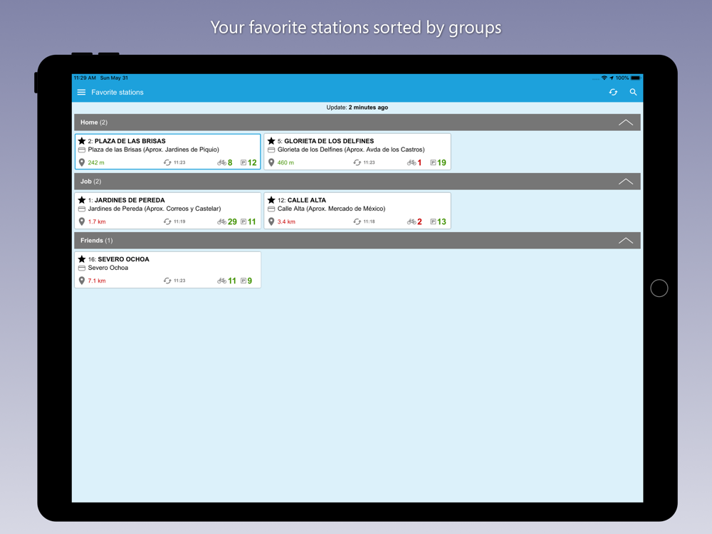 - List of favourite stations categorized by groups (home, work, friends or general).