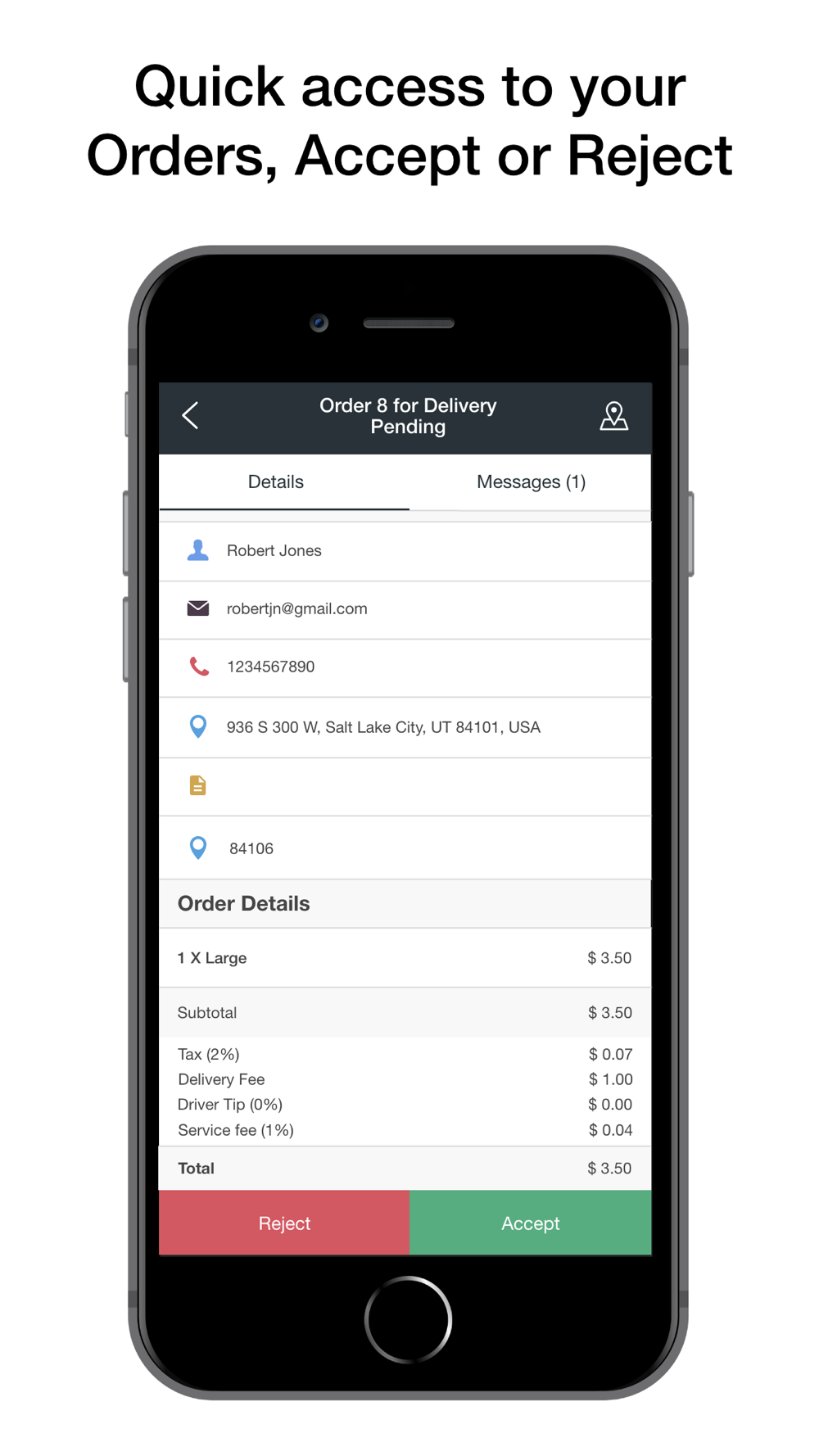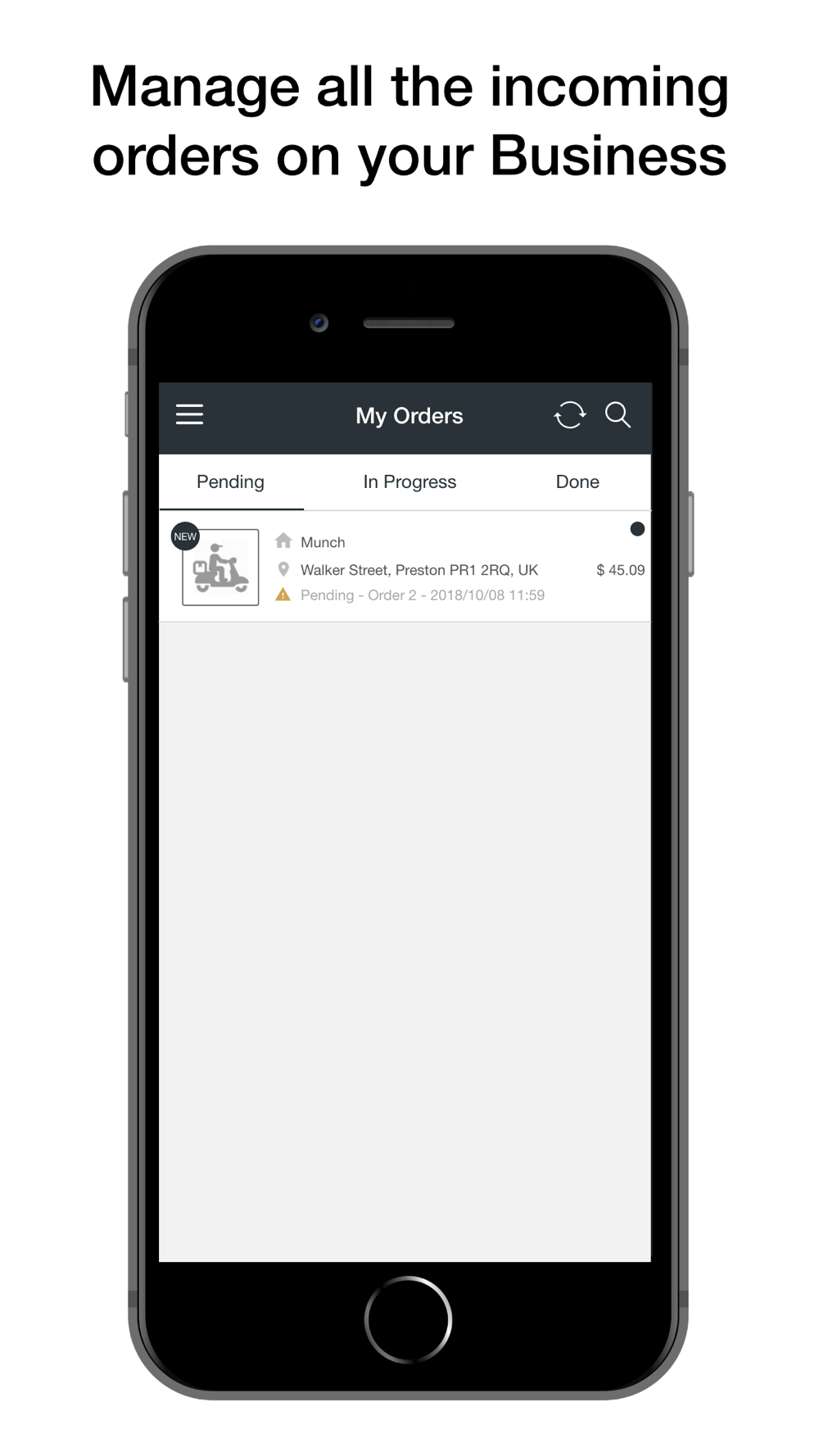 The order in local app for businesses to accept and manage orders.