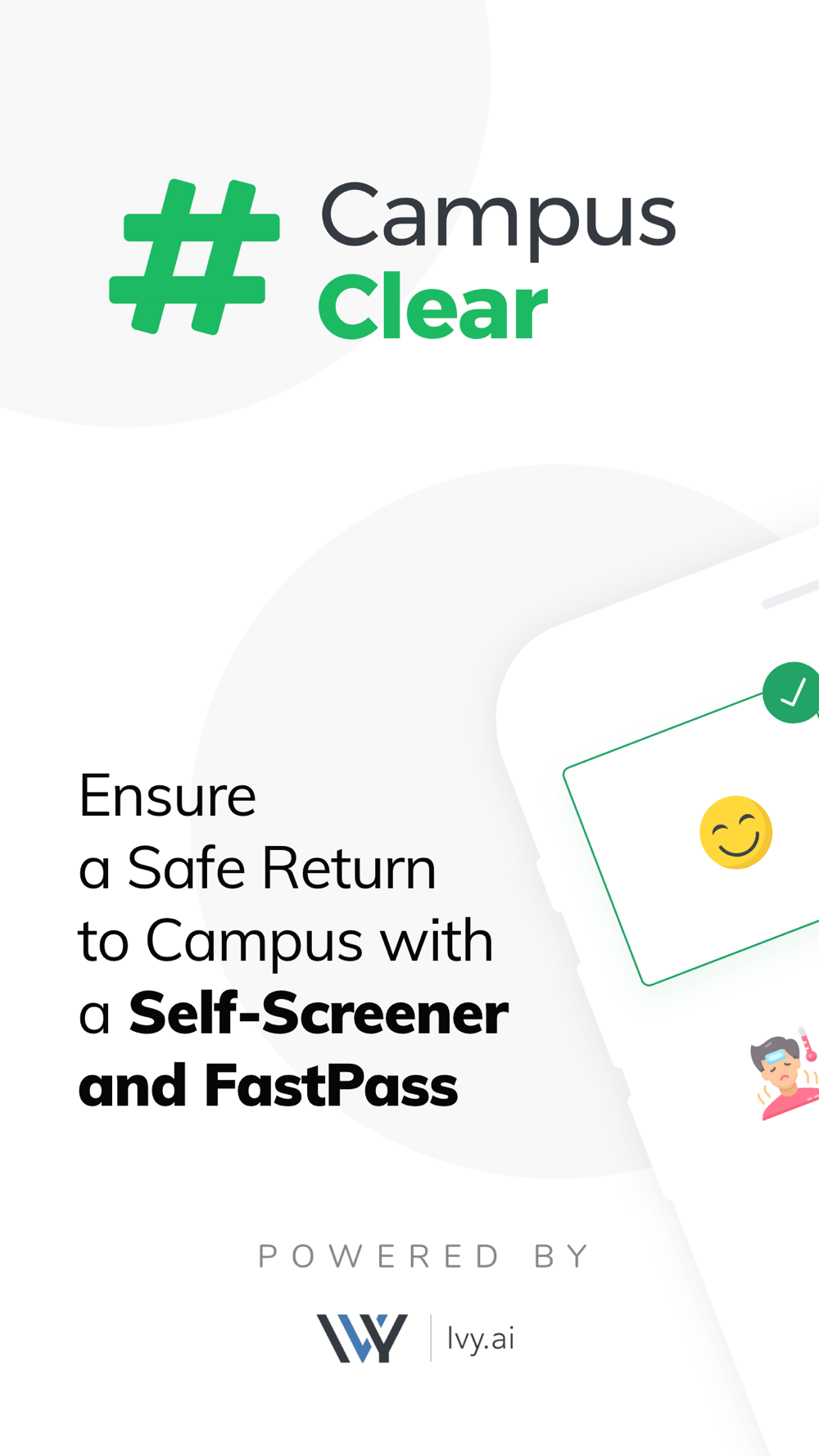 #CampusClear is a free app built to help colleges and universities make informed decisions about on-campus activity. It does not provide medical advice, guidance, or diagnoses. CampusClear is a partnership between Ivy.ai, Creighton University and Stony Brook University that was formed to provide a technological solution to the challenge of self-assessment as a foundational strategy of the return-to-campus initiative.