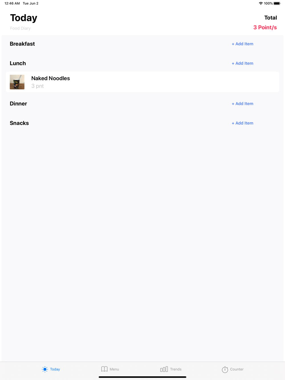 Points Tracker is built with all of the above in mind. No complicated interface, no endless options. Simply add your food and Points Tracker will keep track for that day! At the end of every day, Points Tracker resets to 0 ready for the next day!