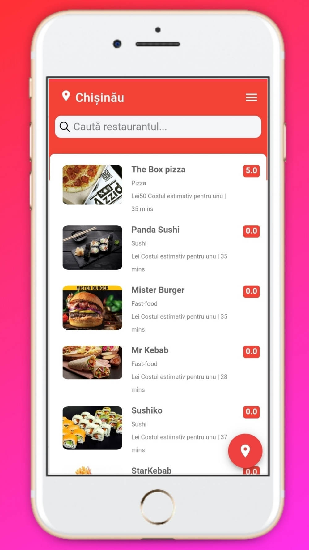 Pizza, Sushi, Burger, Kebab, Fast food.