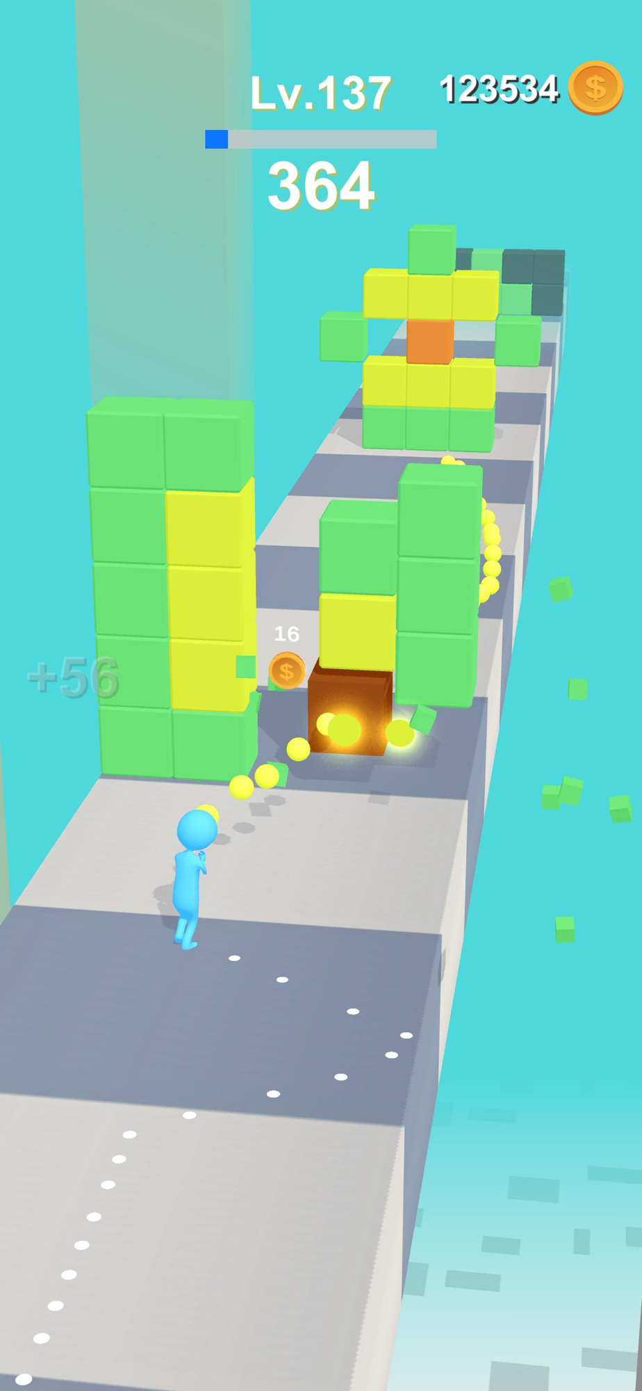 Move the gunner to shot the color bricks for passing through the brick obstacles.