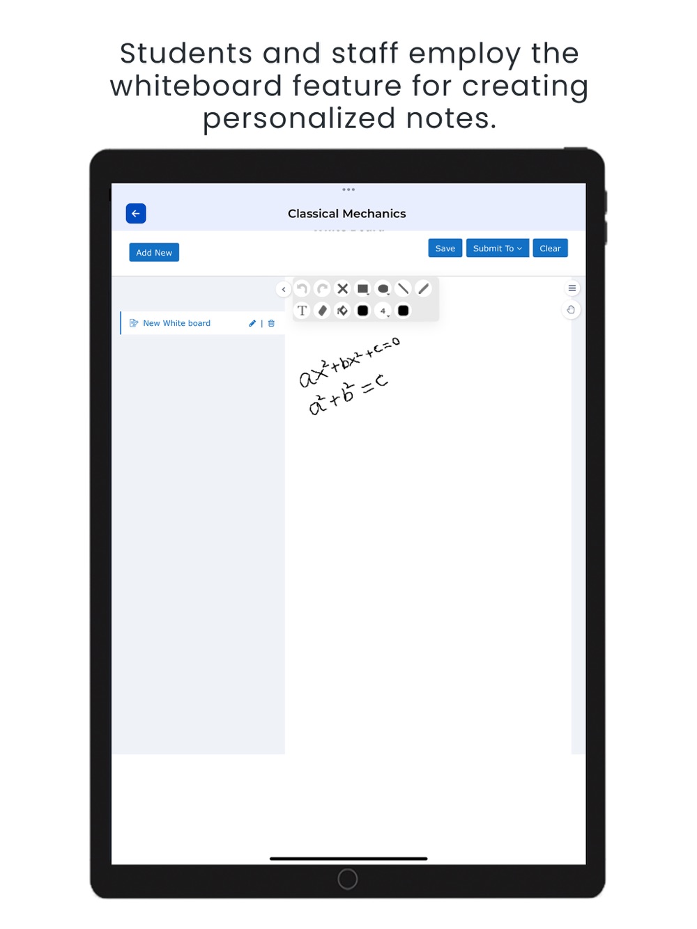 • Students can do self-learning by following and updating their progress on the courses. They can also access and store their files using the drive feature.