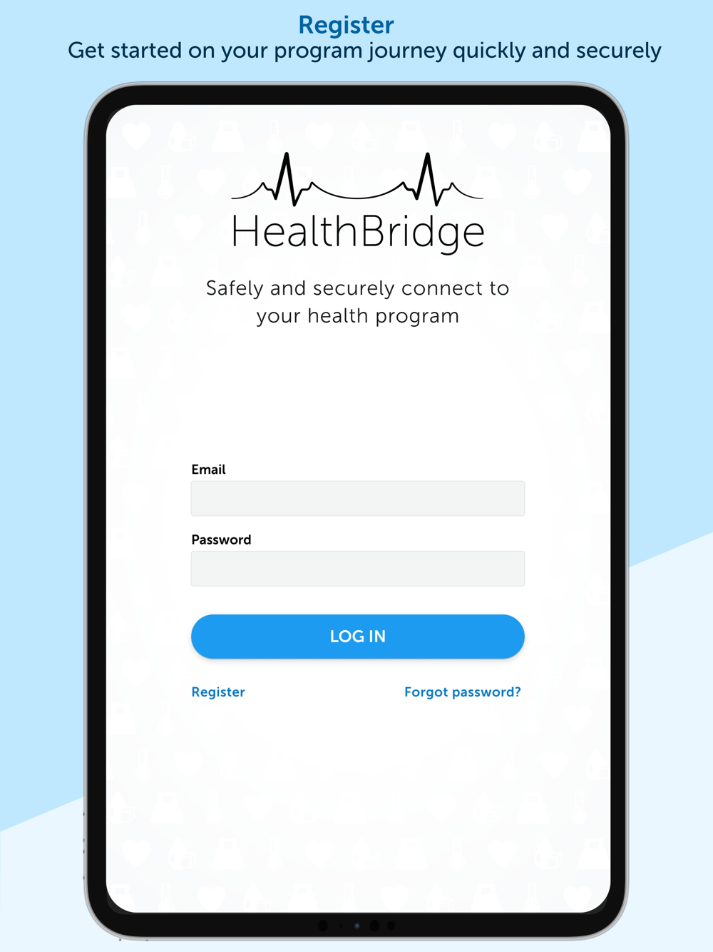 **Usage of the HealthBridge app requires prior enrollment in a program of care by your healthcare provider. The app currently does not support individual usage without consent and support of a healthcare provider. Always consult with your healthcare provider before making any changes to your care plan.**