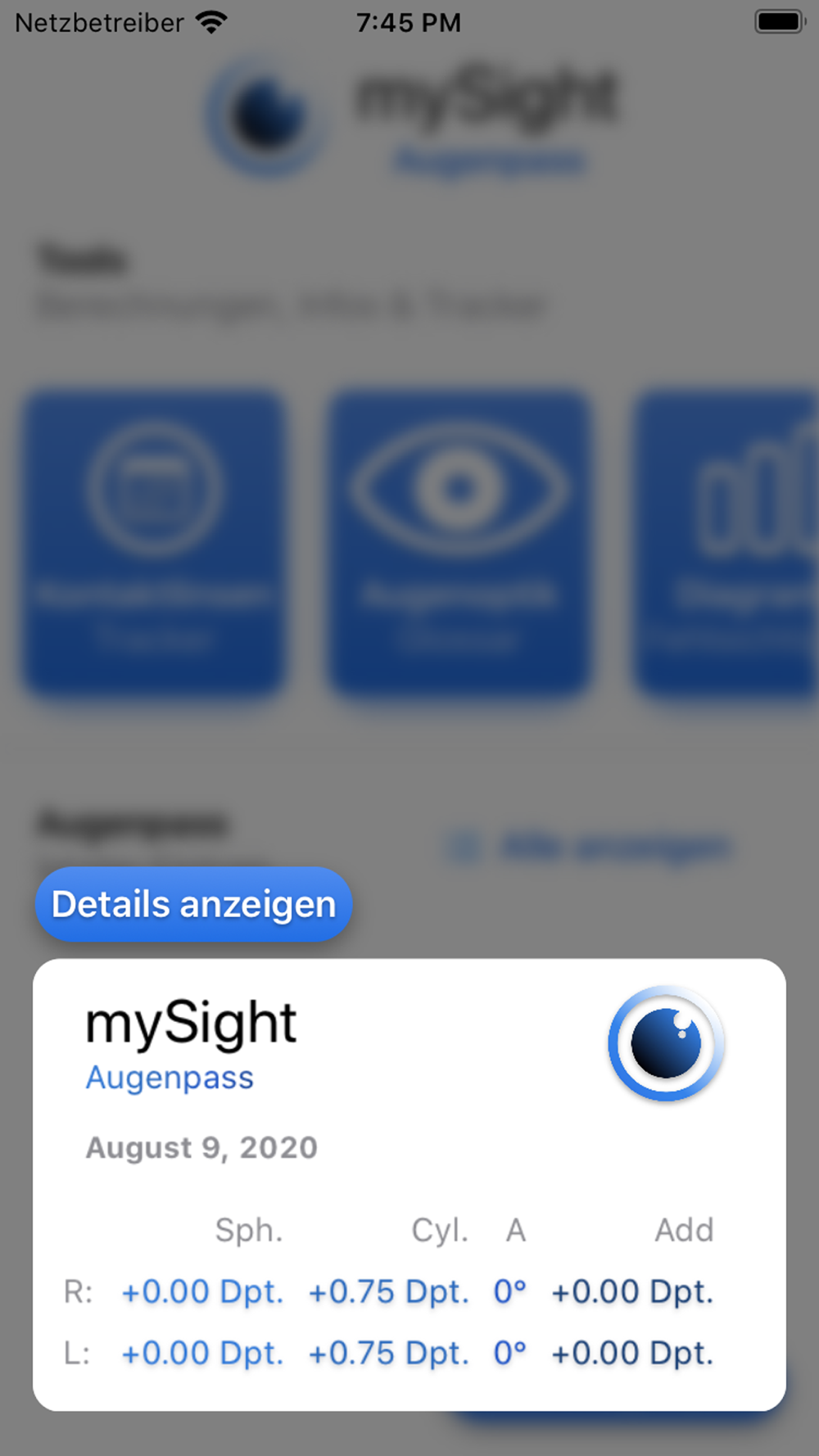 Archiviere deine Augenwerte und sorge somit für mehr Stauraum in deinem Portemonnaie.