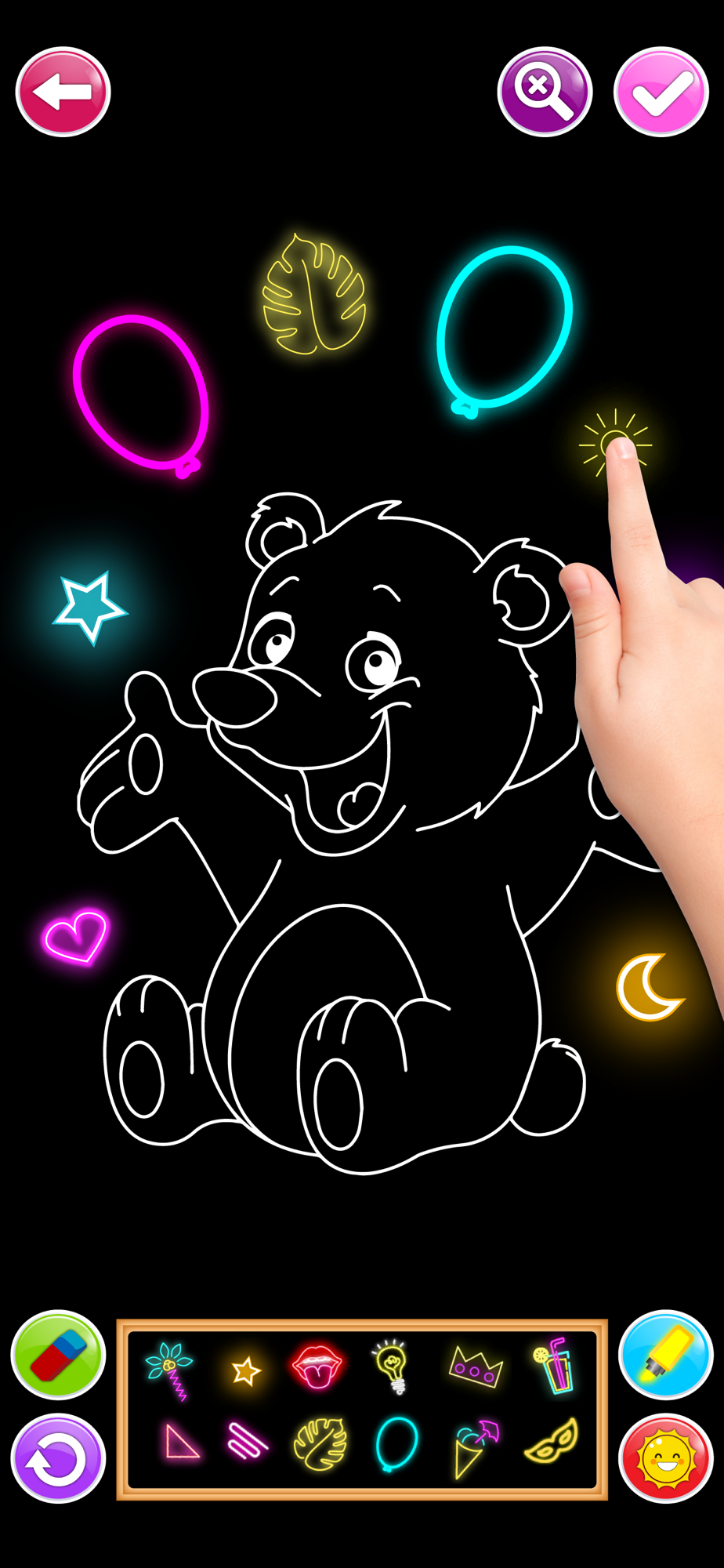 - Select one coloring page from all glow coloring book