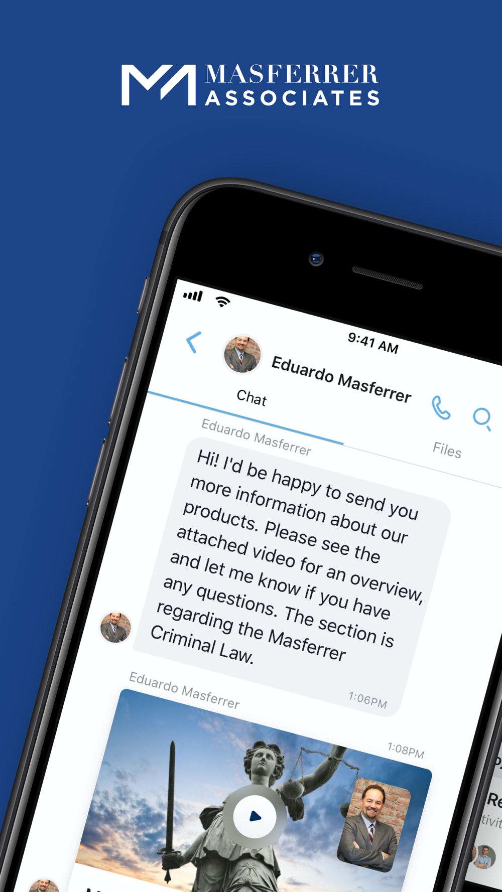 · Easily, efficiently, and securely communicate with our legal team- via text, video or audio chat.