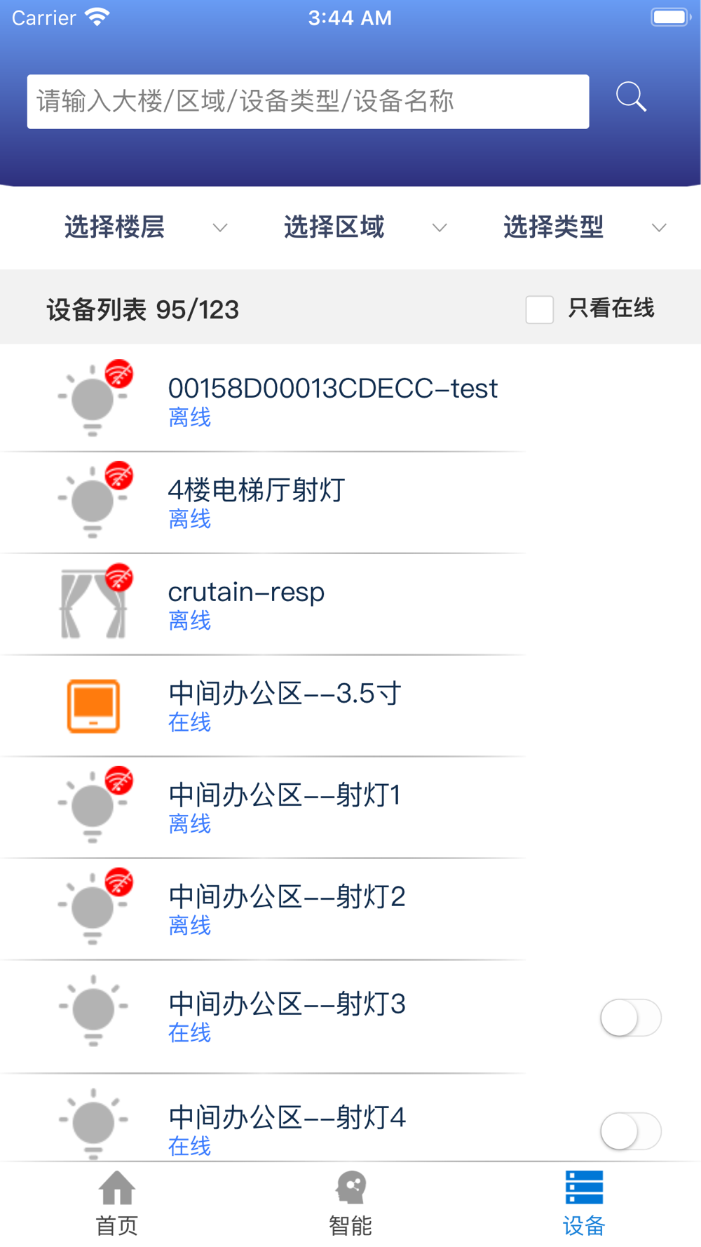 用于远程控制设备, 设备分组, 场景设置及控制, 区域管理, 配置设备的APP