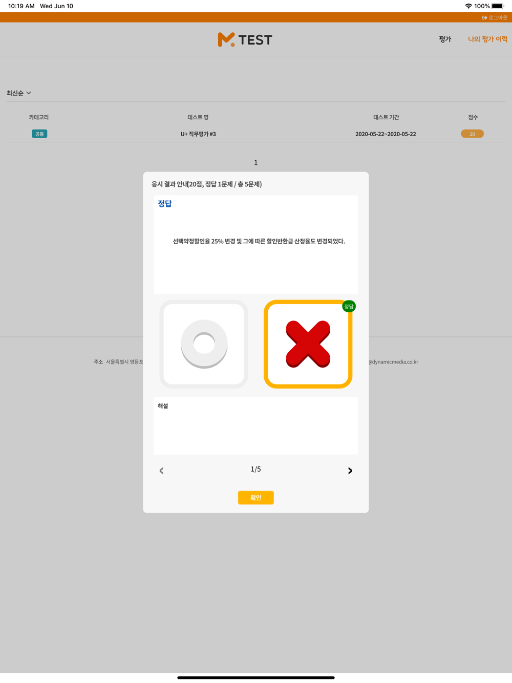 . 이전 테스트 이력은 "나의 Test 이력" 메뉴에서 조회가능합니다.