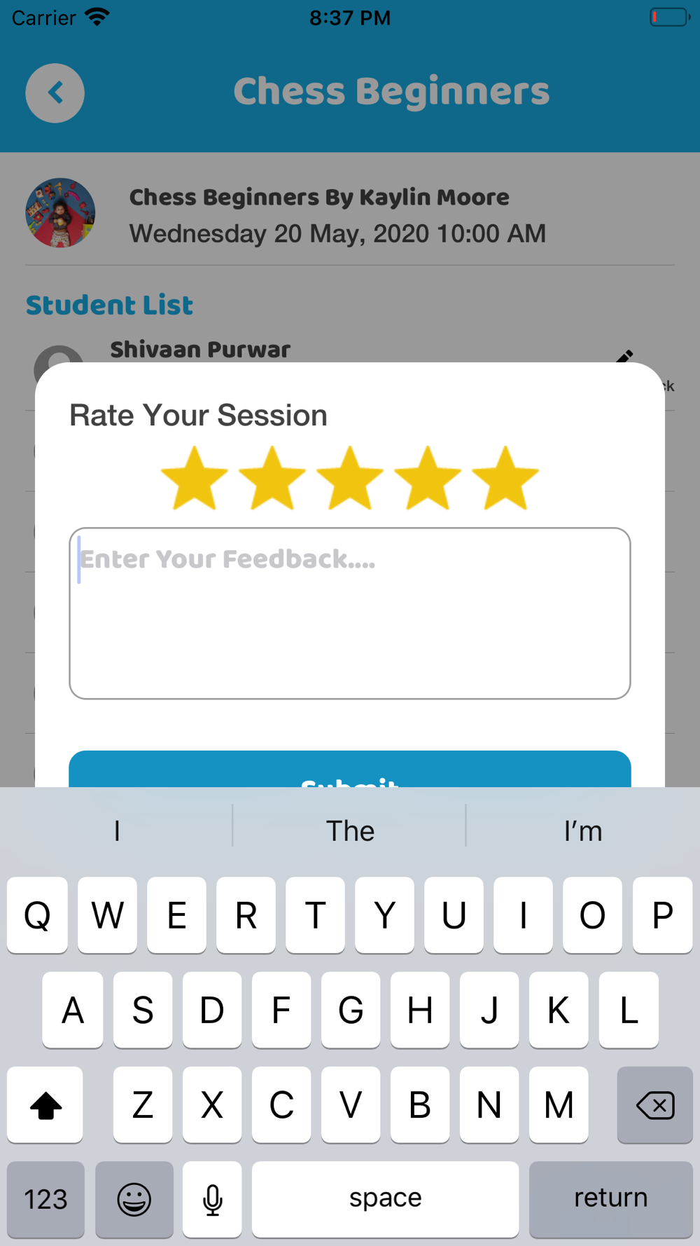 Provide feedback of classes attended