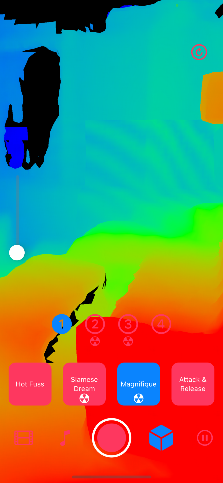 C. Toggle the geometry fill mode by tapping the cube button directly to the right of the record button – some effects work much better in a specific mode!