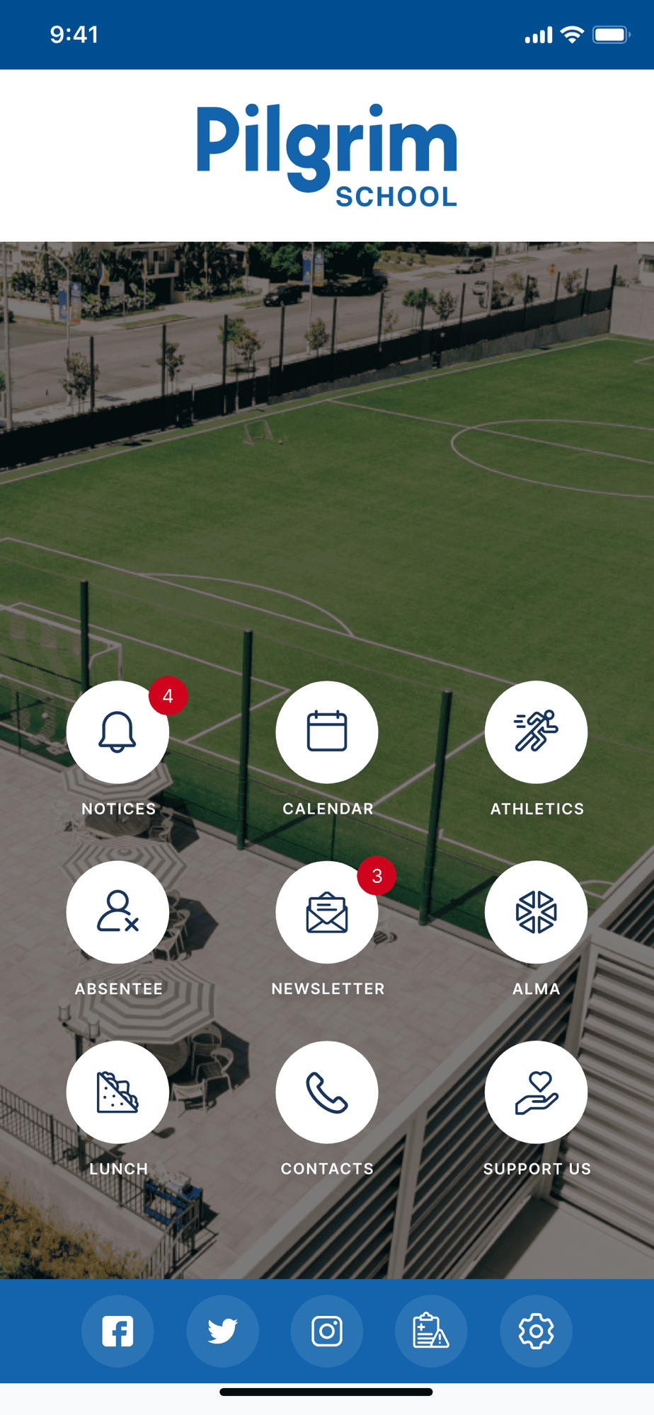 Other features such as a quick and easy Contact Directory help you to reach Pilgrim School with the tap of a button
