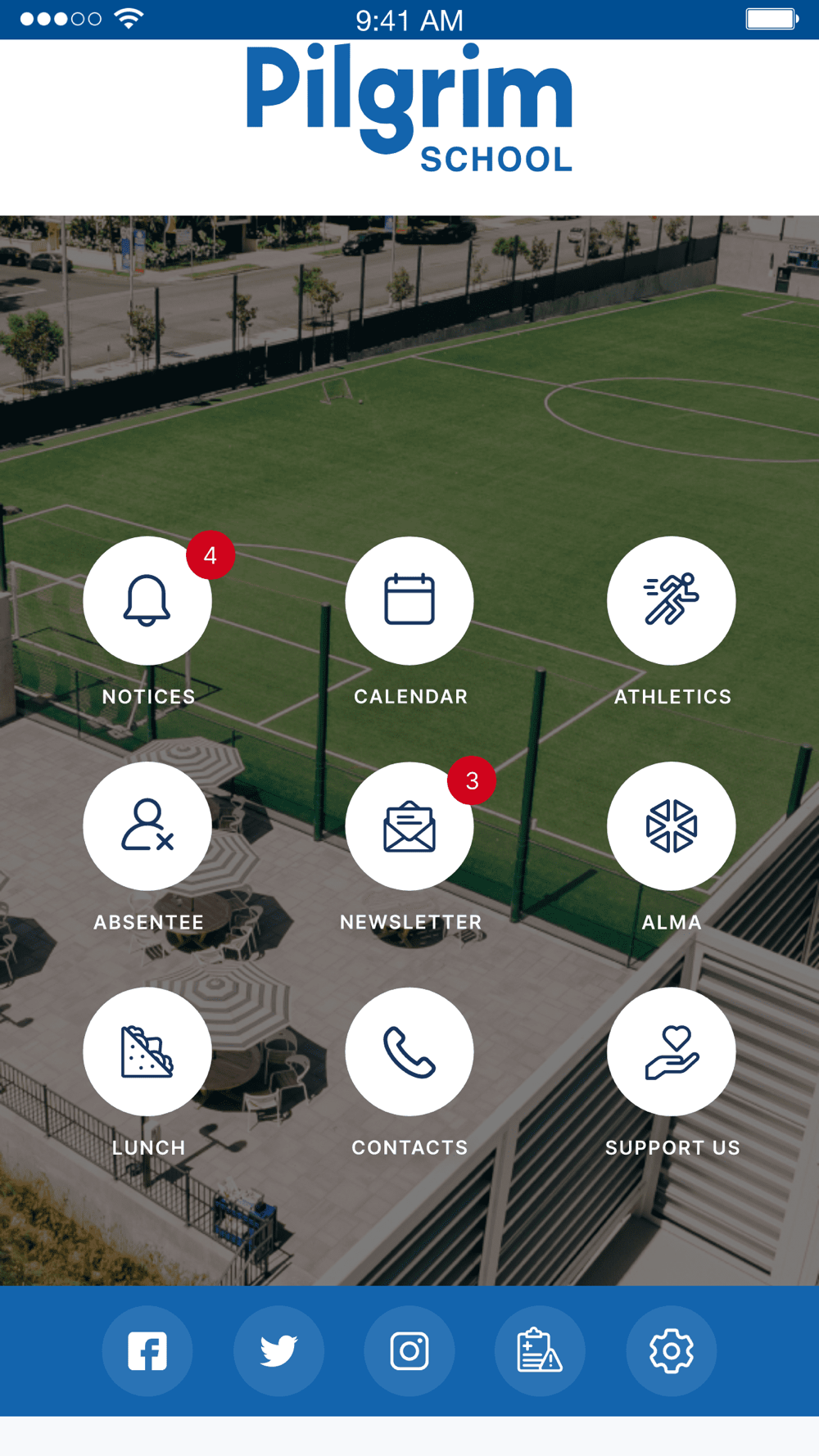 Notices: the Notices module provides Pilgrim School with the ability to keep their community informed with important information, with push notifications for urgent school notices