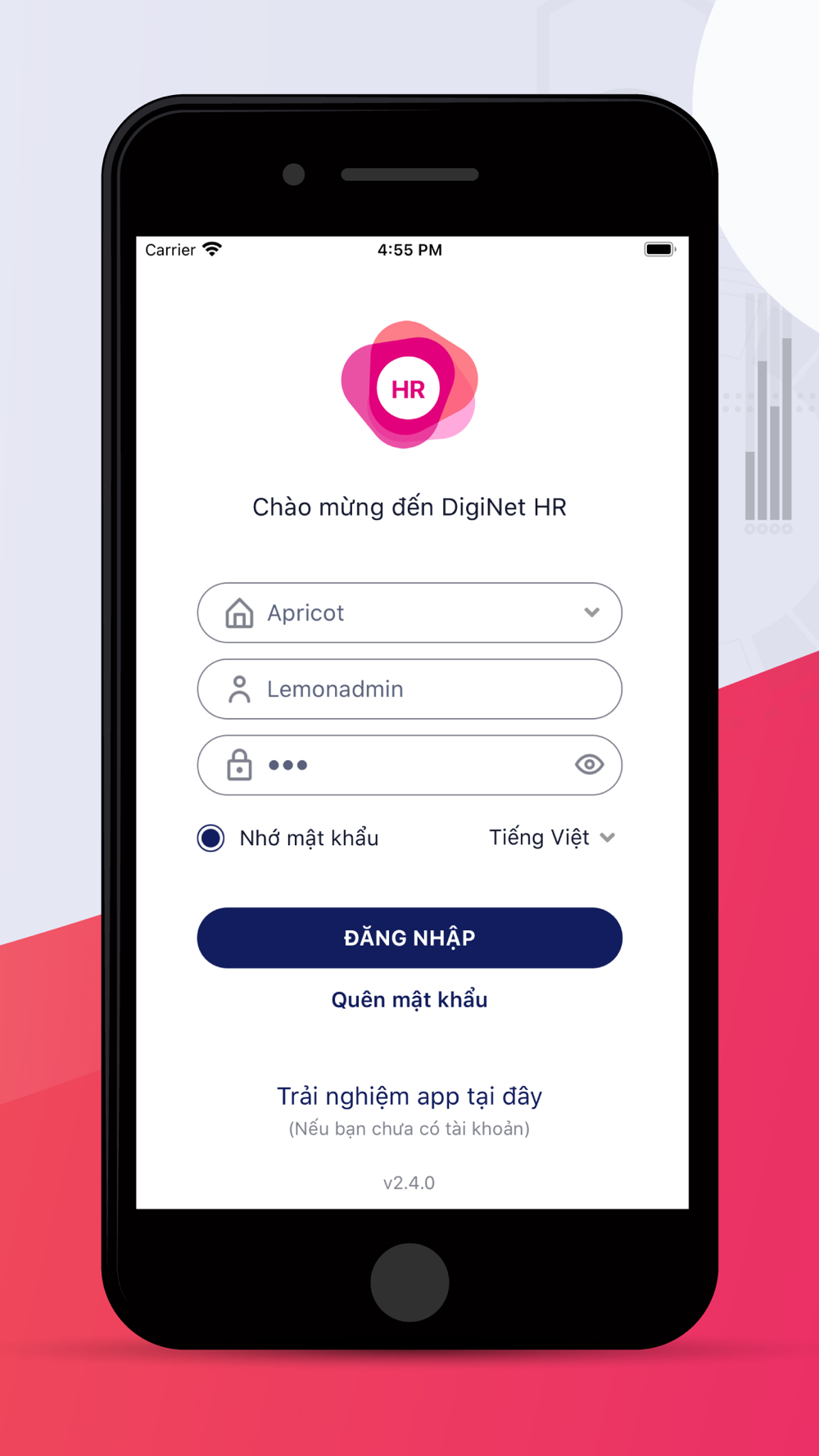 DIGINET HR là một ứng dụng quan trọng trong hệ sinh thái DIGINET ERP do DIGINET Corp phát triển. Với DIGINET HR Mobile, doanh nghiệp dễ dàng tự động hóa các quy trình nhân sự như: tuyển dụng, đào tạo, đánh giá KPI, quản lý hồ sơ nhân sự, xây dựng chính sách công-phép-lương, quản lý giao việc và hỗ trợ nhà quản trị ra quyết định kịp thời và chính xác.