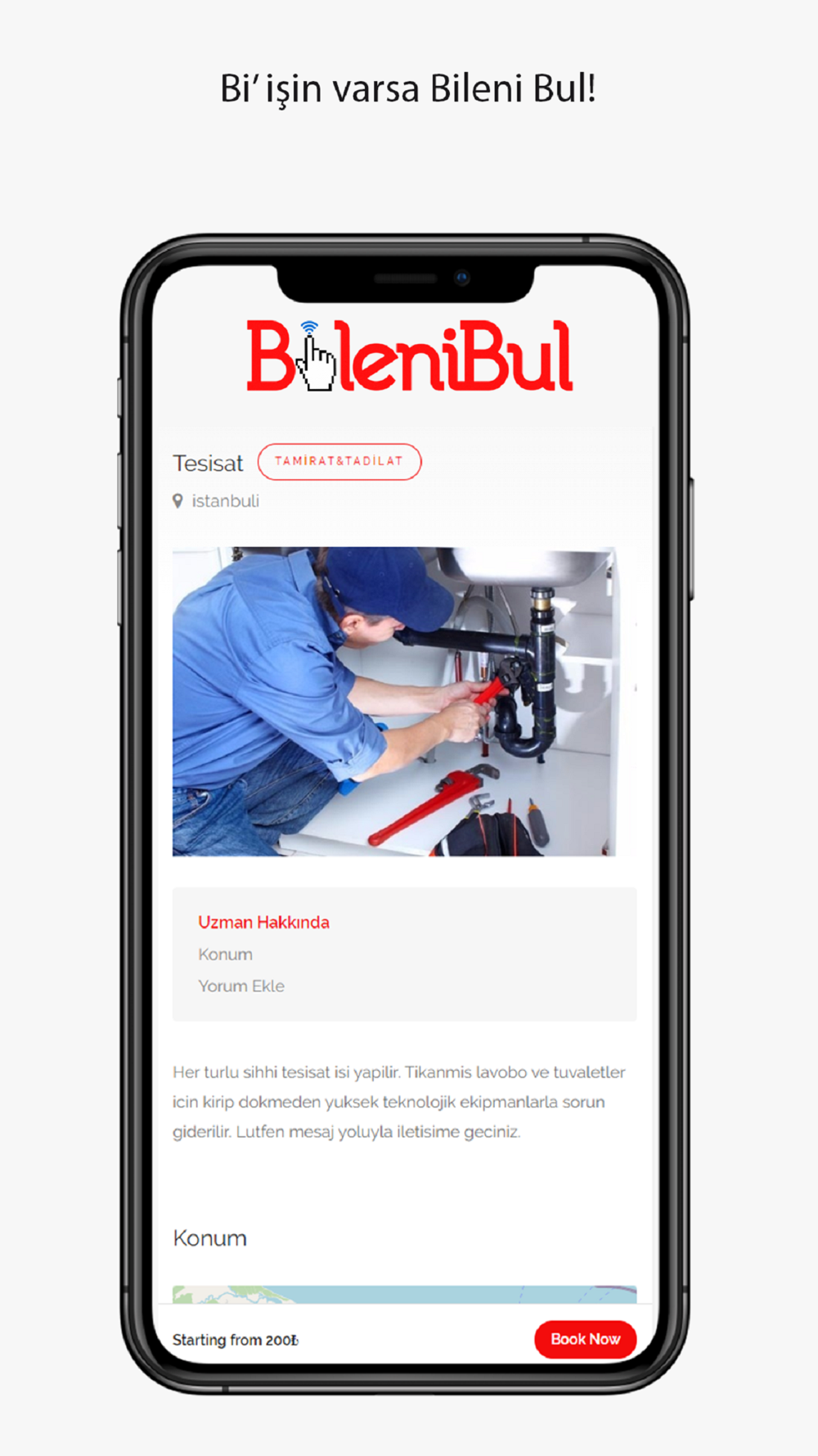 bilenibul.com ihtiyacınız olan işi yapabilecek, harita üzerinden size en yakın profesyonelleri bir kaç saniye içinde bulabileceğiniz, ayrıca uzmanı olduğunuz konuda da insanların size kolayca ulaşabileceği ücretsiz bir platformdur.