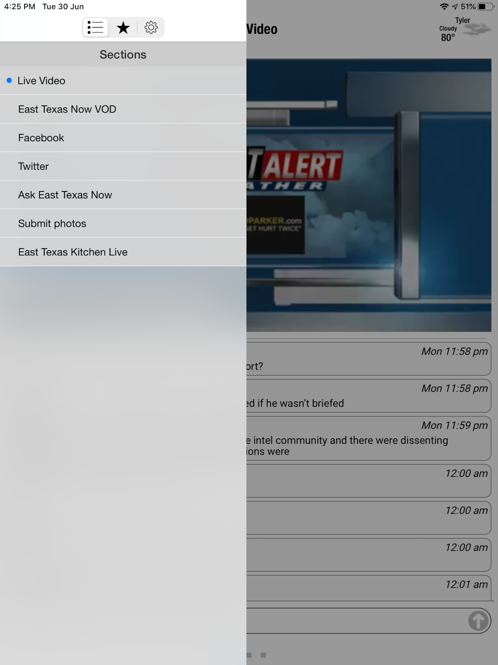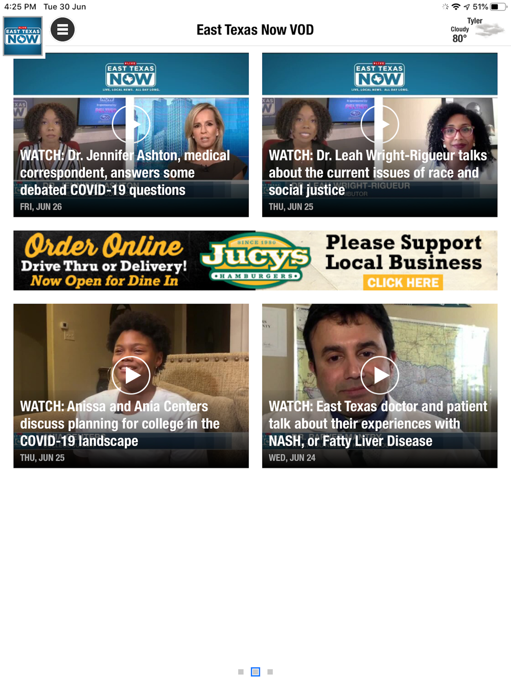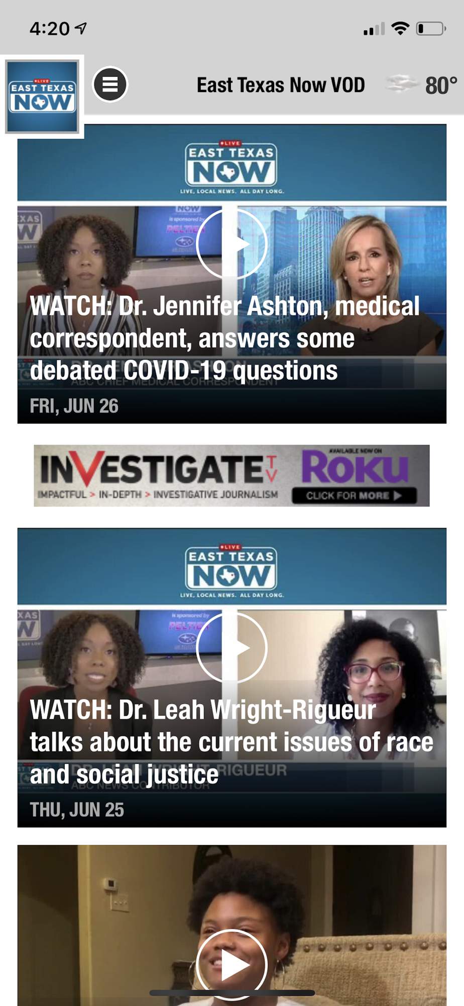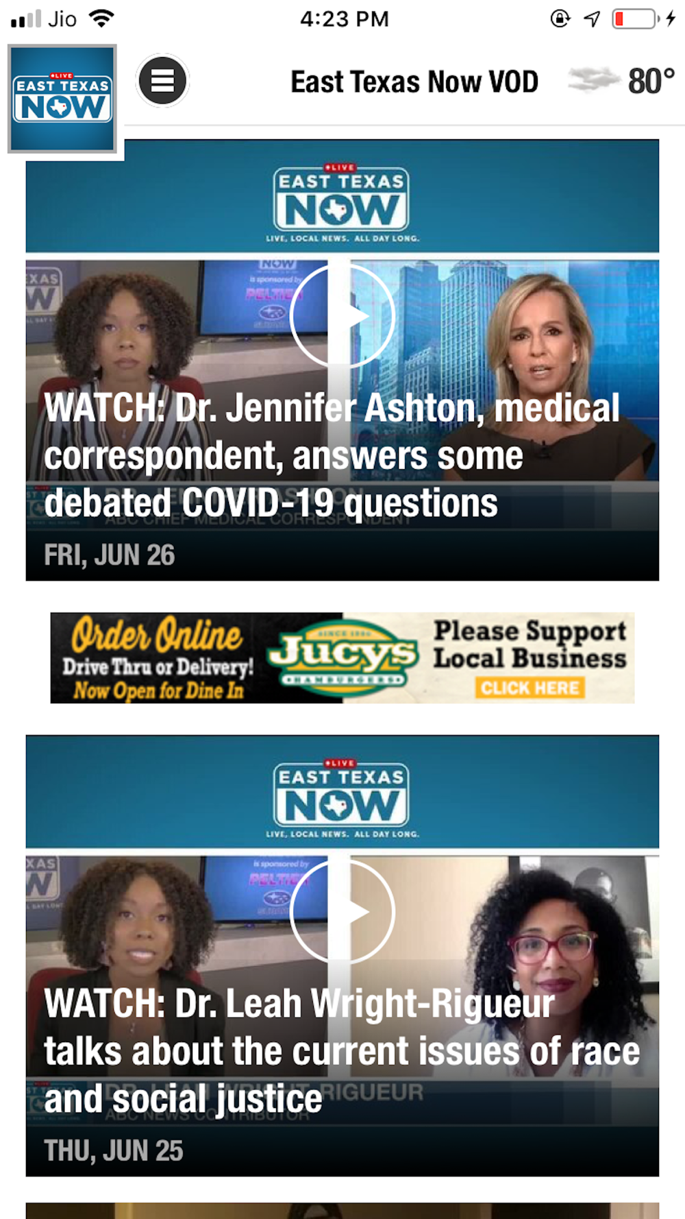East Texas Now is live from the KLTV/KTRE studio 18 hours a day, from 4:30 a.m. to 10:30 p.m. We bring you the latest from local, state and national news. We bring in guests to discuss community events and experts on breaking news events. With the East Texas Now app, you have easy access to East Texas Now, as well as the ability to chat about what we are talking about on East Texas Now. This app also has video on demand and our latest East Texas Kitchen Live shows.