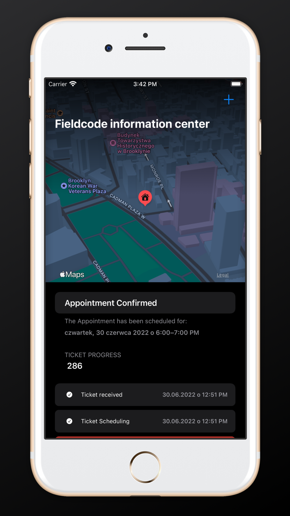 - display relevant data for any event including appointment date, device details, on-site address, assigned agents and their contact information