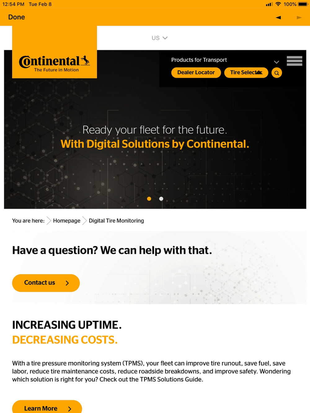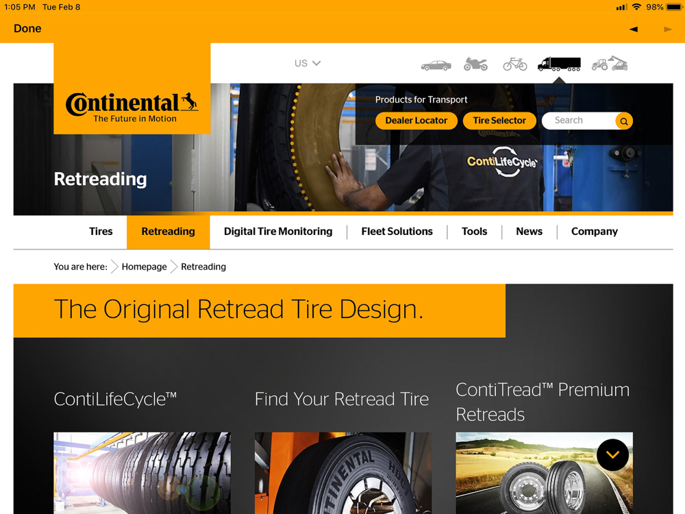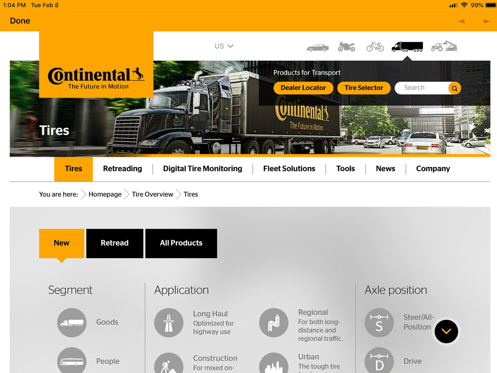 This app offers many capabilities, including access to News, Fleet Solutions, and Continental Truck Tire Product information. Documents are available for off line usage upon selection and documents can be shared.