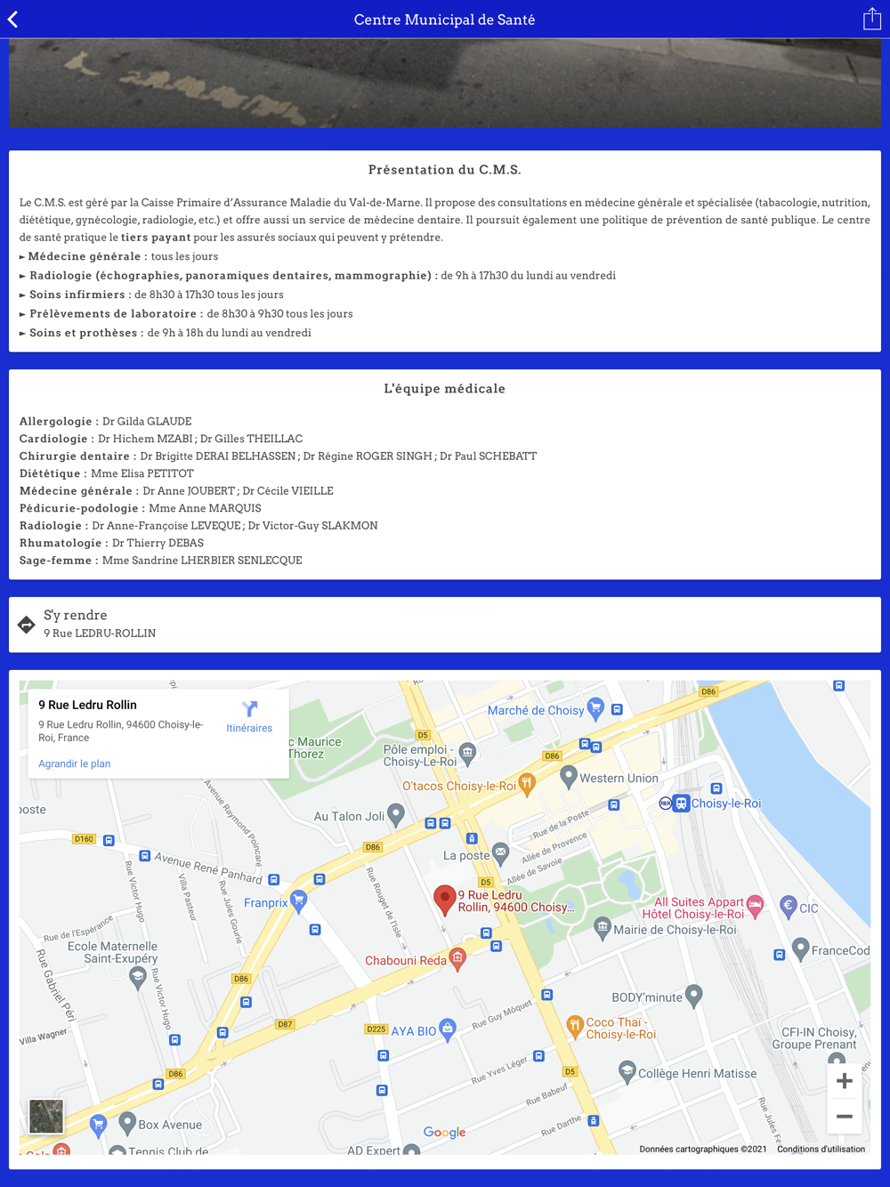 Cette application, réalisée par deux jeunes Choisyens, vise à présenter l'offre de santé déployée sur la commune de Choisy-le-Roi (94).