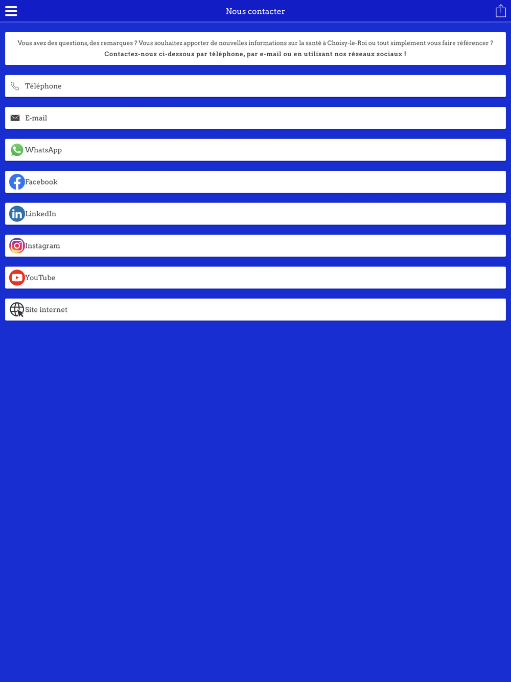 Son objectif est de vous faciliter la vie avec une application de qualité. Tout simplement, le but de cette application est de simplifier toute recherche en lien avec la santé sur Choisy-le-Roi !