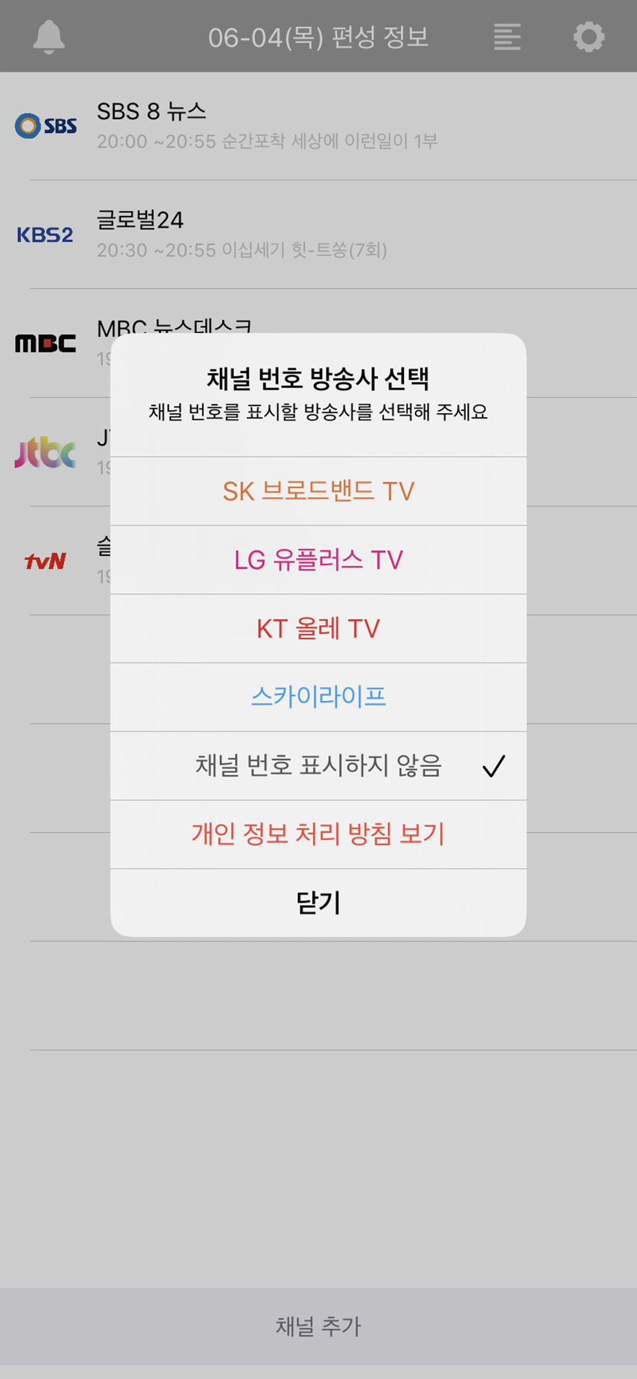 - 필요 없는 채널 슬라이드로 편리하게 삭제