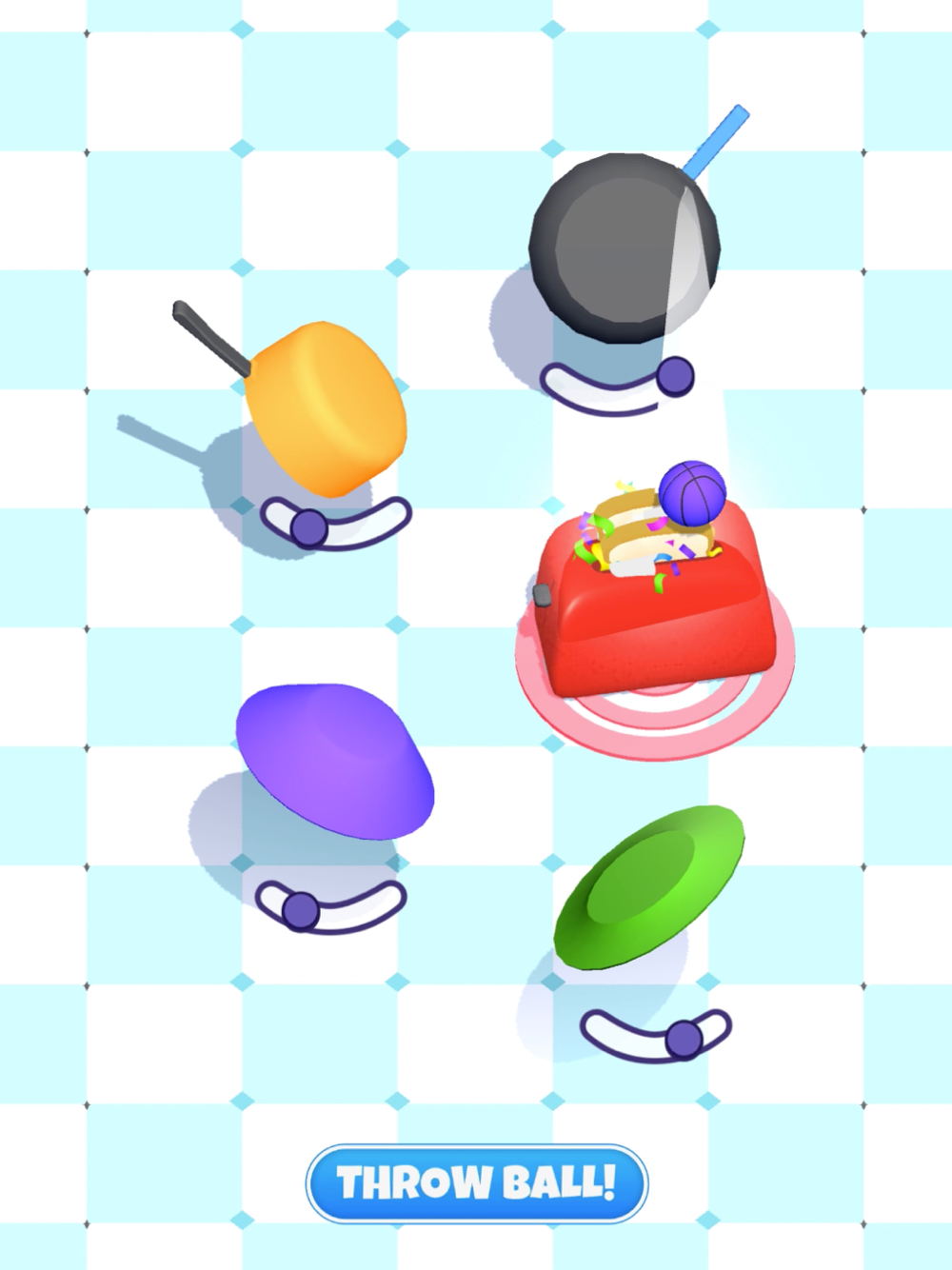 Rotate pans and pots to find the perfect angle. Shoot the ball and score!