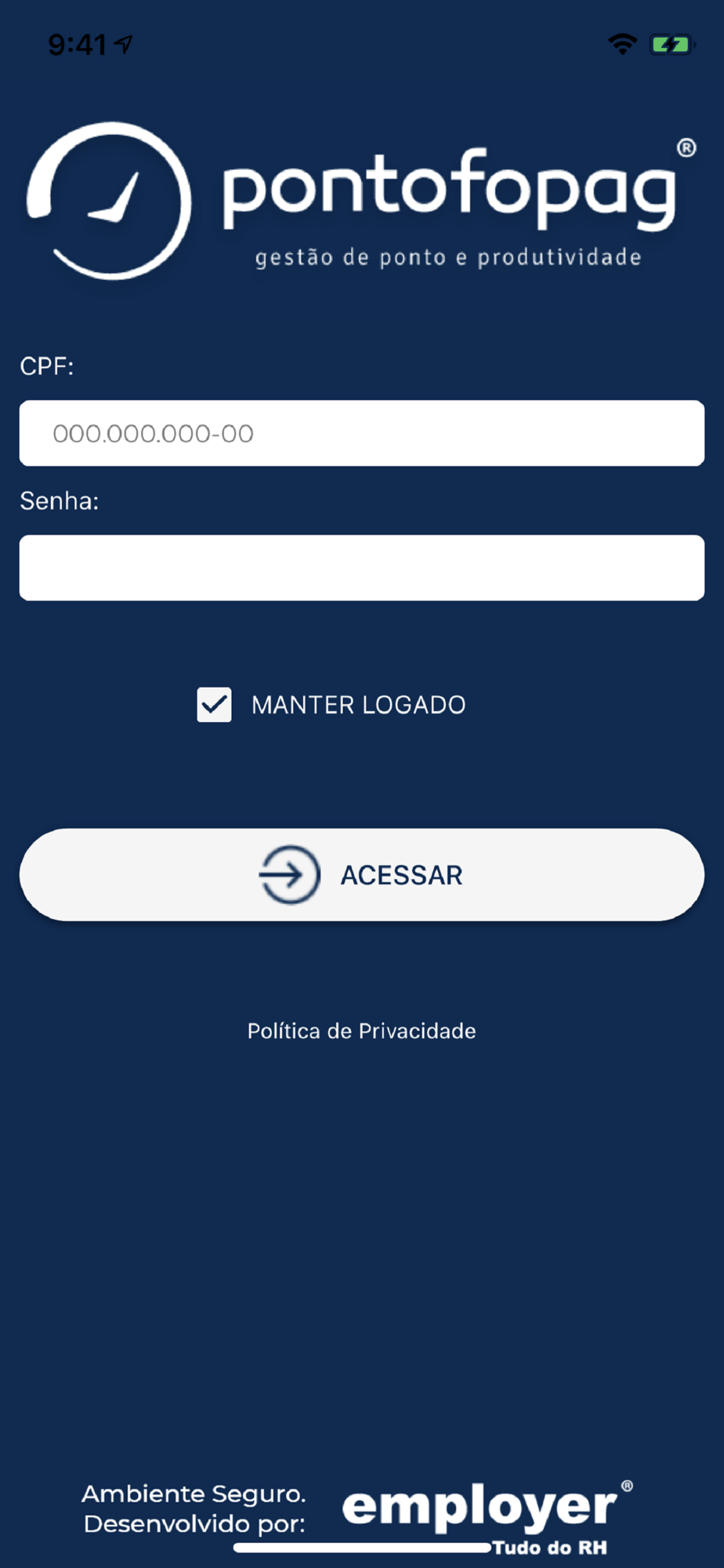 Aplicativo para registro de Ponto destinado a usuários do sistema de ponto Pontofopag, possibilitando o registro de ponto no modo "off line", adequado a Portaria MTE 373/2011