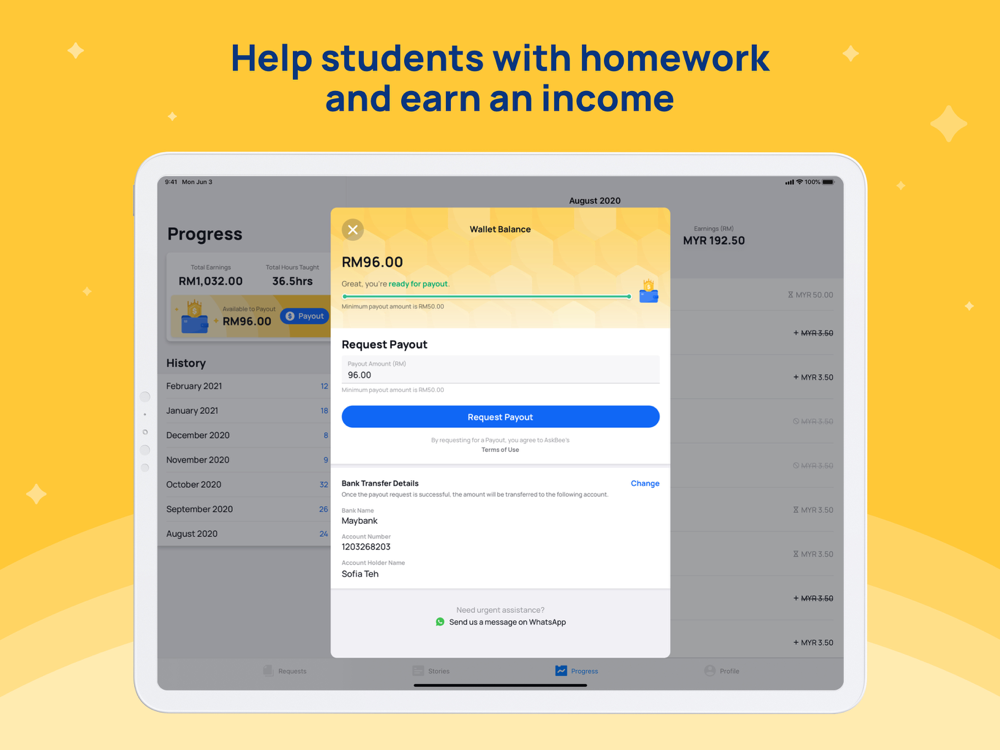 Hit a homework hurdle? Get help from our tutors, right from the comfort of your home! AskBee is an innovative app that connects students with tutors on-demand. AskBee’s original in-app video call experience enables face-to-face explanations, screen sharing functions and fun interactive modes to enhance the learning process. We are on a mission to make tuition accessible, affordable and enjoyable.