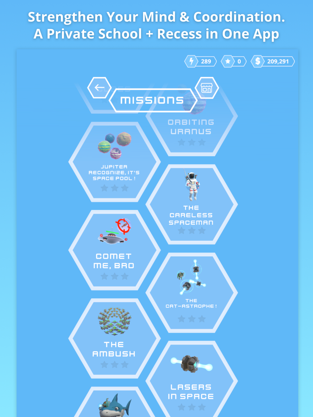 Welcome to the world's first augmented reality (AR) space game for kids... that's also a school! Blast through waves of UFOs, sharks with laser beams, and asteroids. Dodge drones to rescue space kitties. Upgrade your ships and solve 3D space puzzles too! 25 unique levels and lots of excitement await. But thee's a twist. To unlock plays, you won't have to watch ads. Instead, you'll complete world-class math and English lessons for kids age 6+, designed by ClassAce.io. It's like having a private tutor and recess all in one app. Get ready for fast, fun, effective learning.