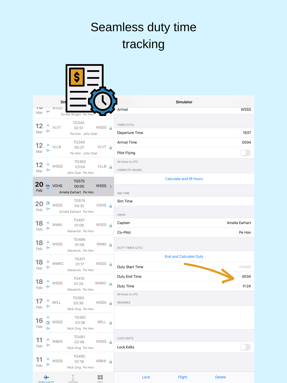 Our smart suggestions would ensure an accurate and error-free experience even on the go. Easily create another sector by using data from a particular flight log. SimplyLog would intelligently pre-fill date, airport, and crew using information from an easier sector.
