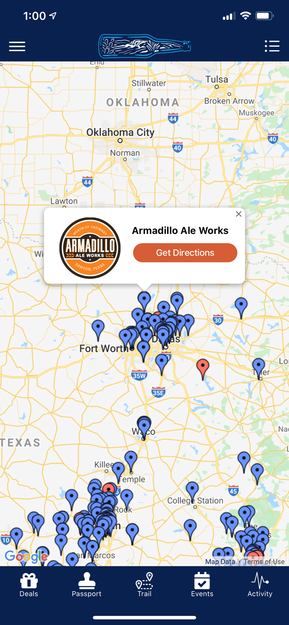 • Discover Texas craft breweries near you using a location-based List or Map view