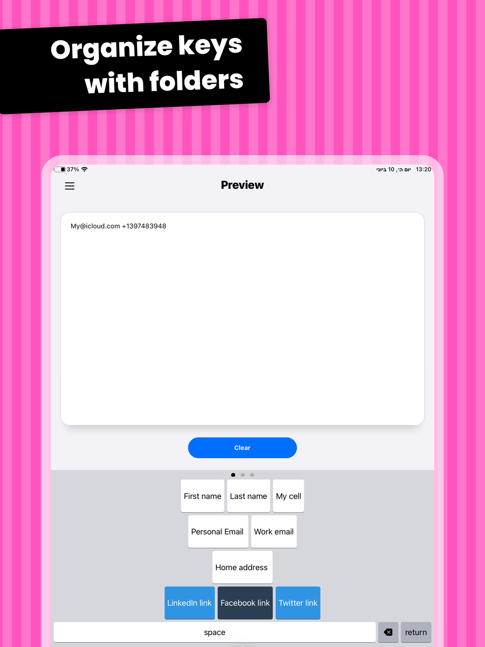 Personalize your custom phrases and templates, save time by inserting snippets, templates, phrases and much more, with just a tap of your keyboard.