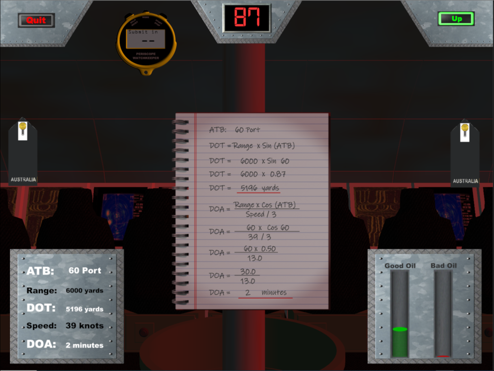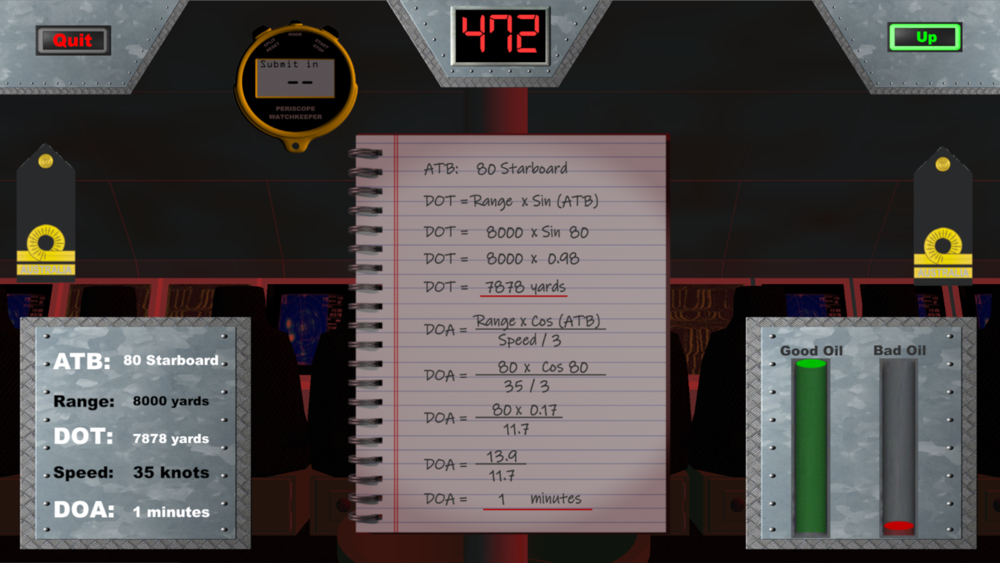 The only publicly available submarine periscope training application focused on "eyes only" skills. Suitable for new submariners or those refining their skills. Features: