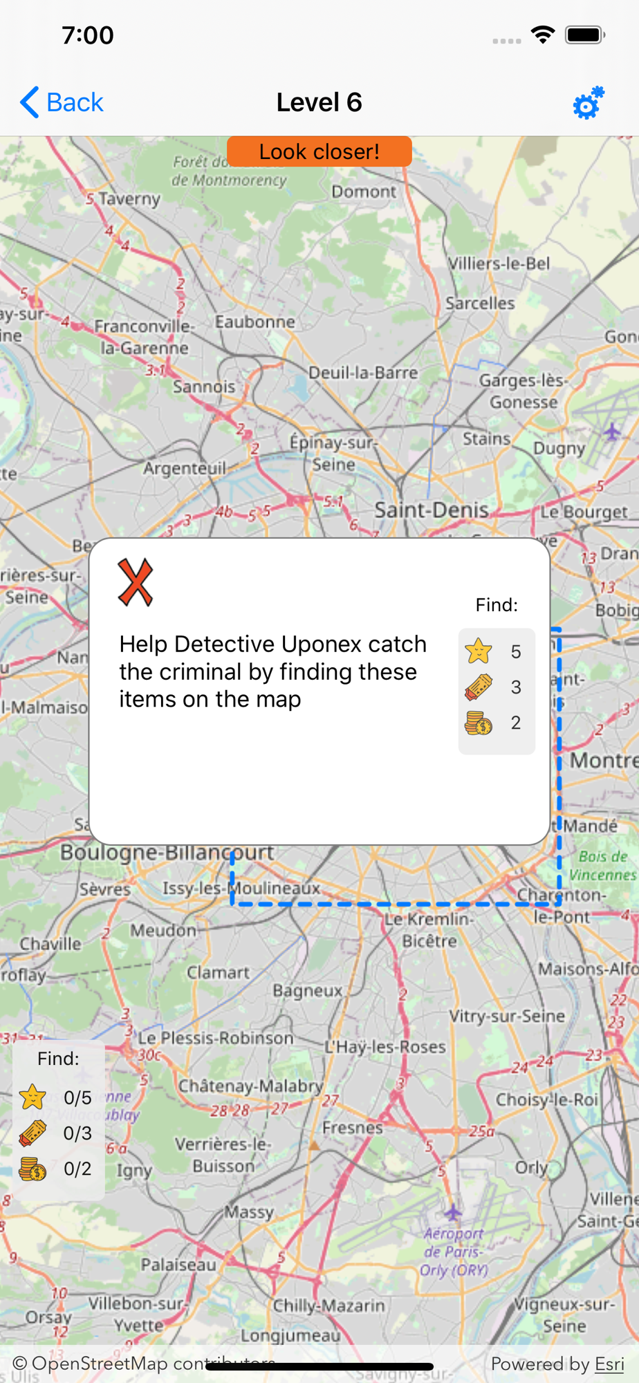 Help Detective Uponex catch the criminal by finding clues on the map.