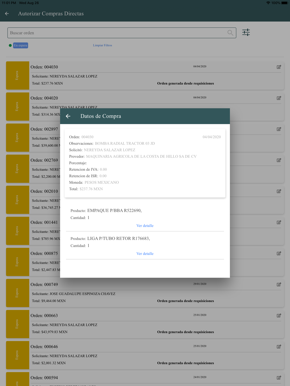 Corrección de detalle al cargar órdenes de compra de importes altos