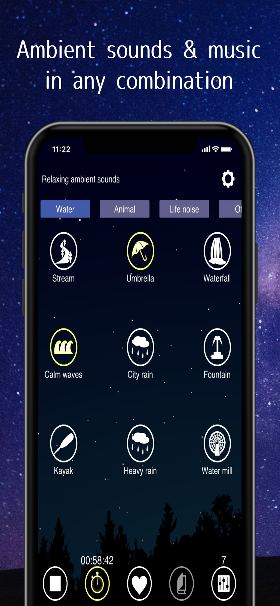 - High quality ambient sounds in five thematic areas: nature, water, animal, life, and other sounds